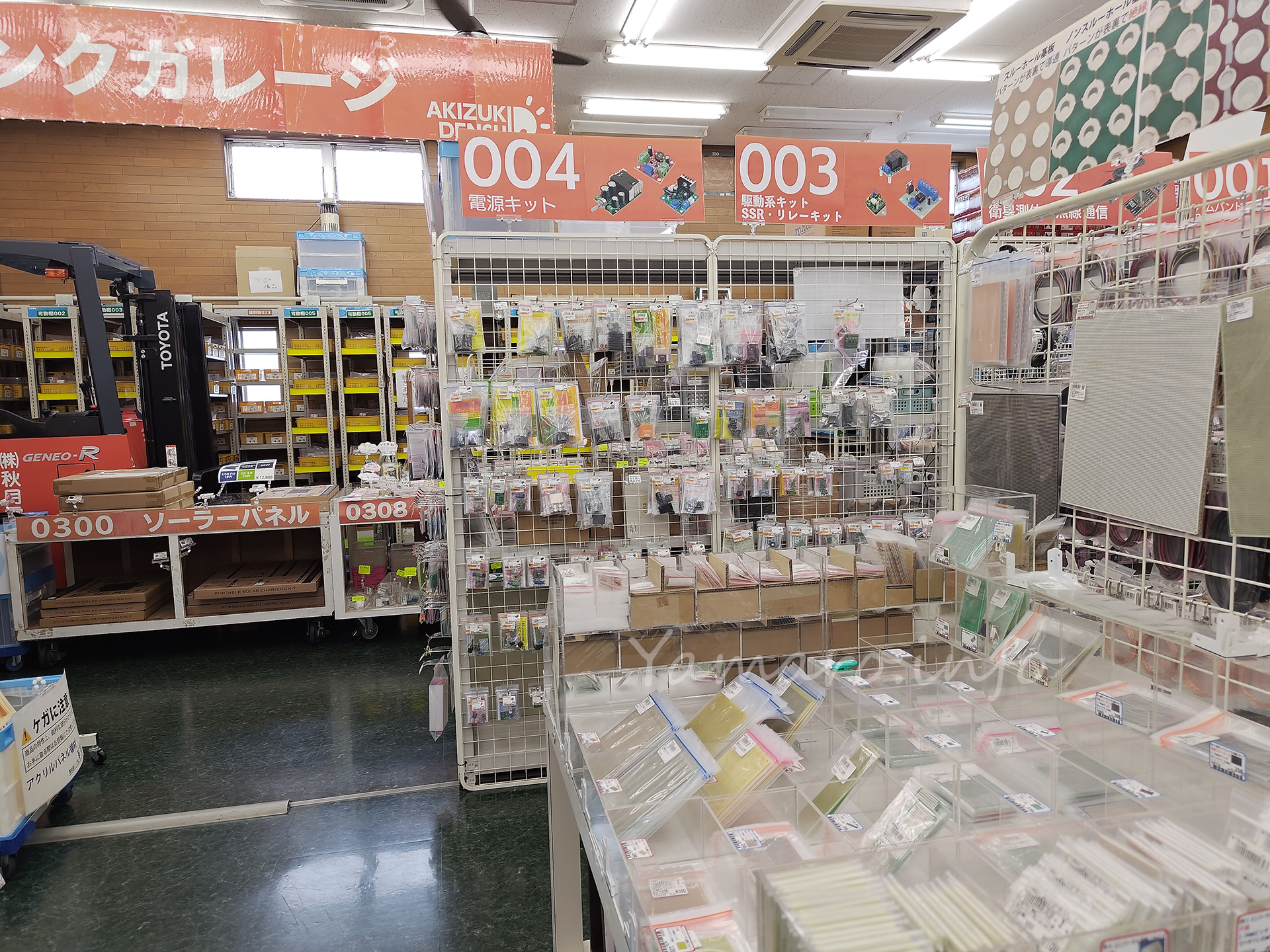 ただ、UPSから不定期に警告音が出てうるさいので、通販ではなくすぐ買いに行けるところ、で調べたところ、、秋葉原では有名な秋月電子通商の八潮店に在庫があるということ。ここは駐車場もあるので、車で行ってみることに。ただ我が家からはちょっと遠かったです。でも車で行けるのは便利ですね。