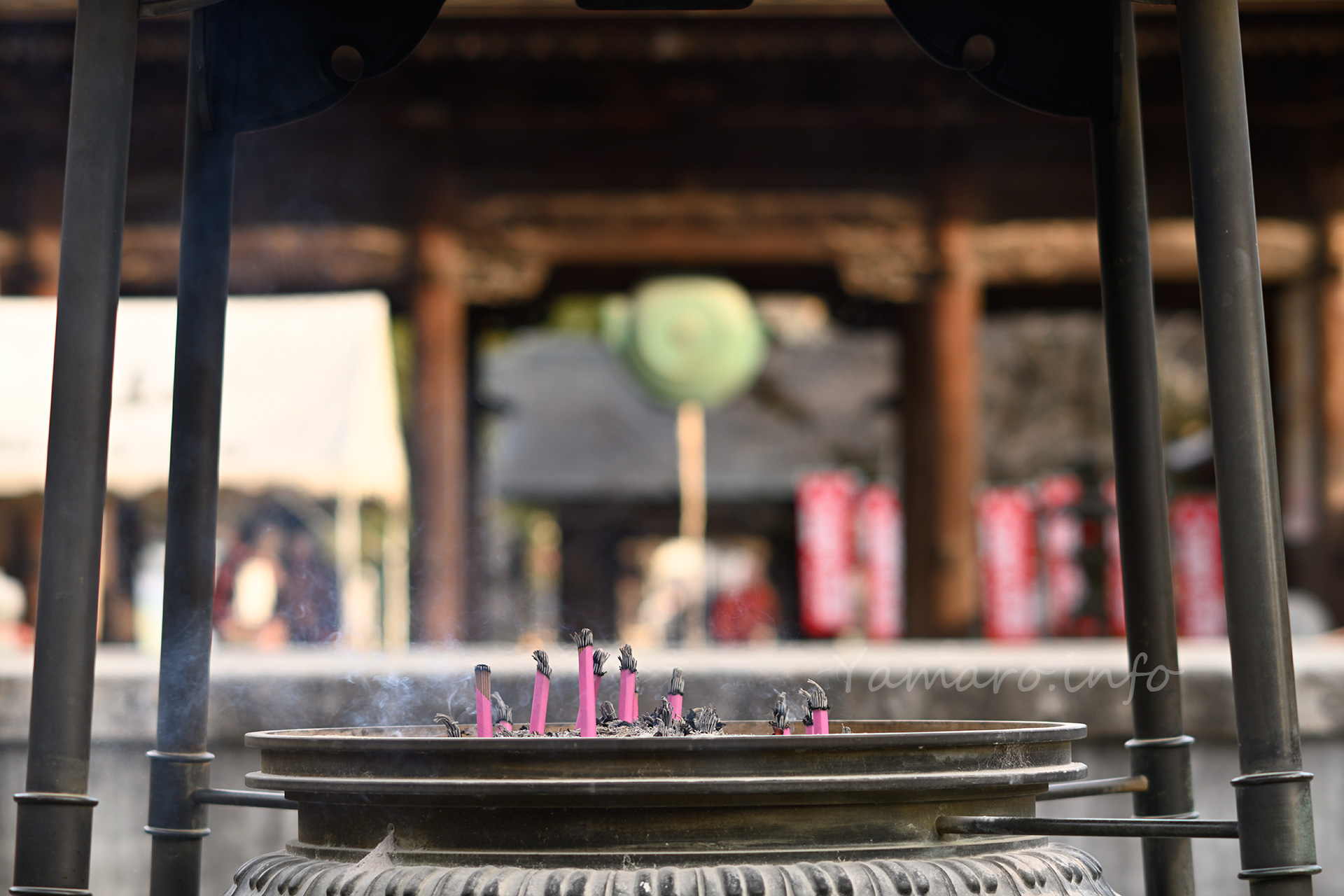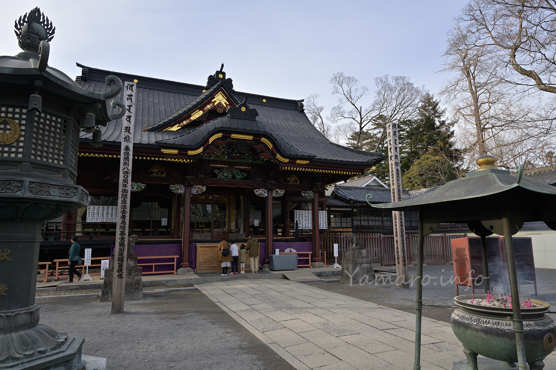 というわけで、やってきました、埼玉県は熊谷市にある歓喜院聖天堂。こちらは御本殿となります。1779年(安永8年)に完成、2003~2011年に保存修理が行われたそうで、その際に外装の色彩が建造当時のものに復元されたということで、割と最近なのですね。