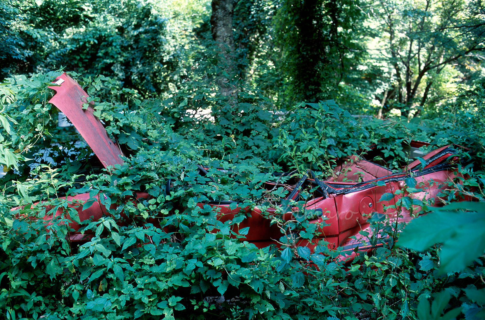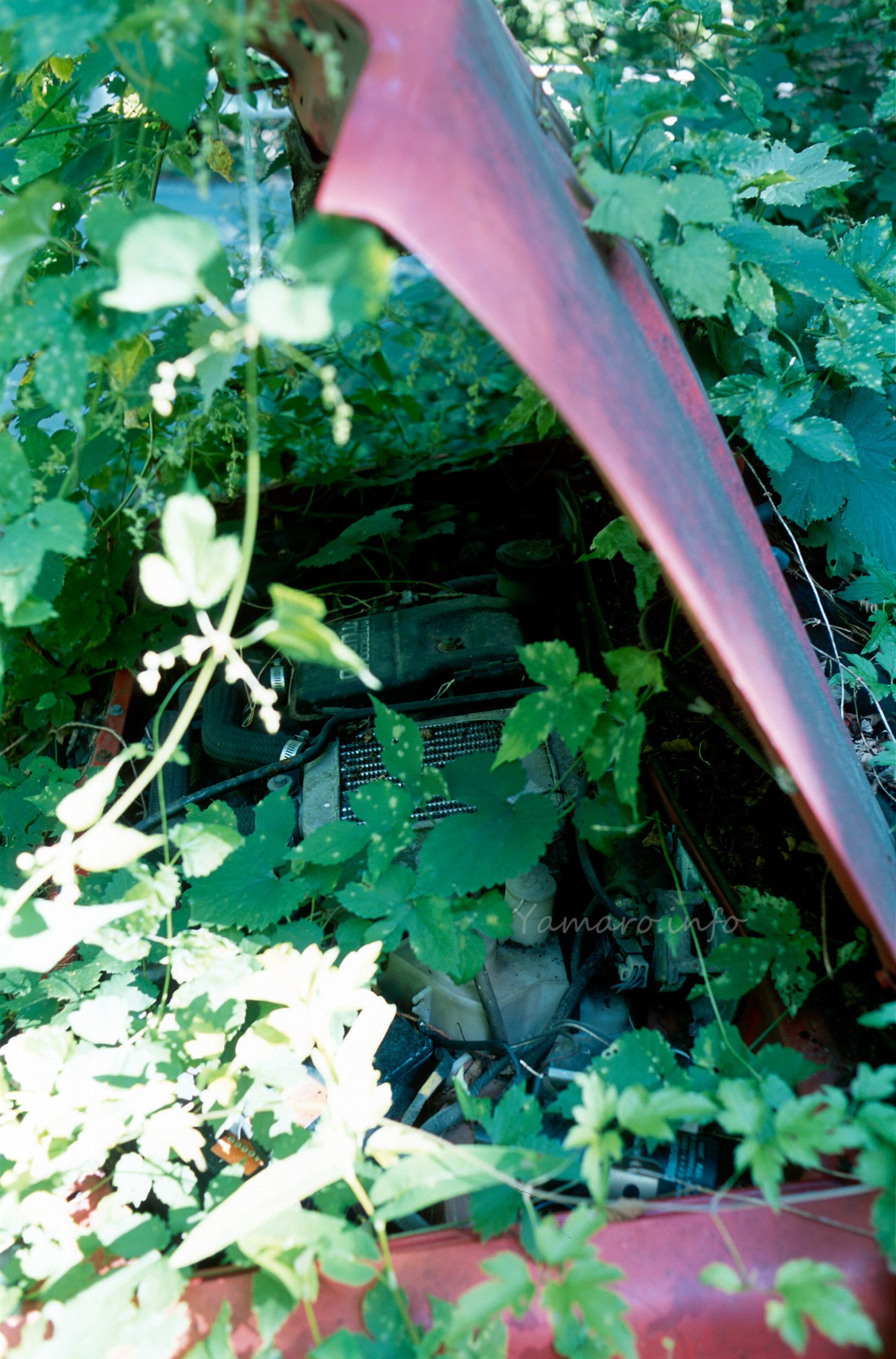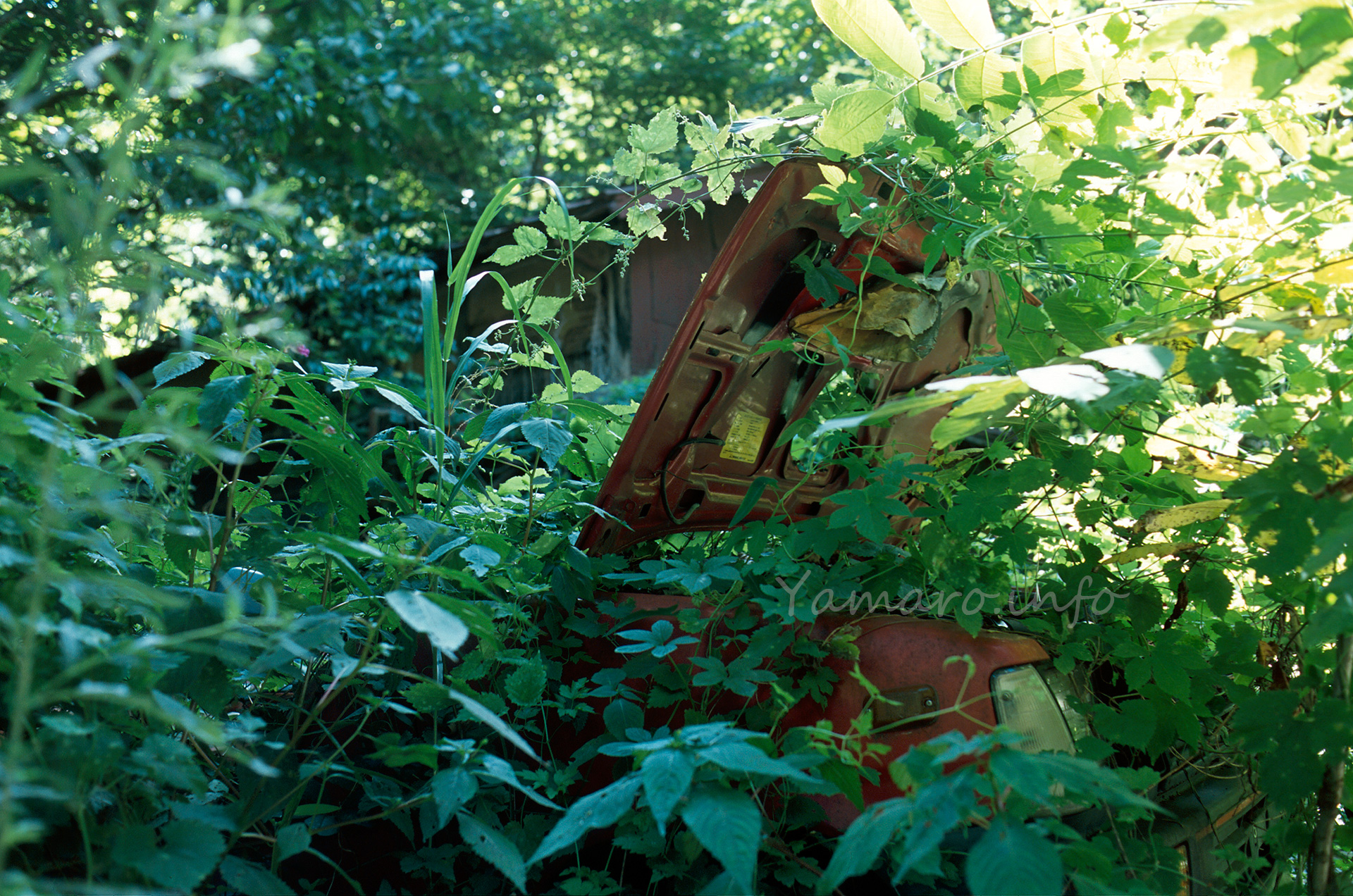 焼山集落の象徴でもある、三菱ミニカ、夏なのですっかり緑に覆われていました。
