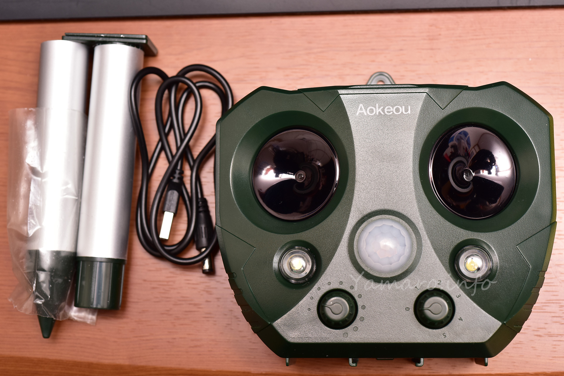 動画は、モード5で動作中の様子です。スマホのマイクだとあまり拾えていませんが、13.5kHzからの超音波を発生させるため(モード1)、モード1~4までを繰り返すモード5に設定すると、人間の耳にも聞こえる超音波も発生するため、近くではキンキンと煩いです。おじさんにも煩いので、耳の良い若い方だともっと煩く感じるでしょうね。