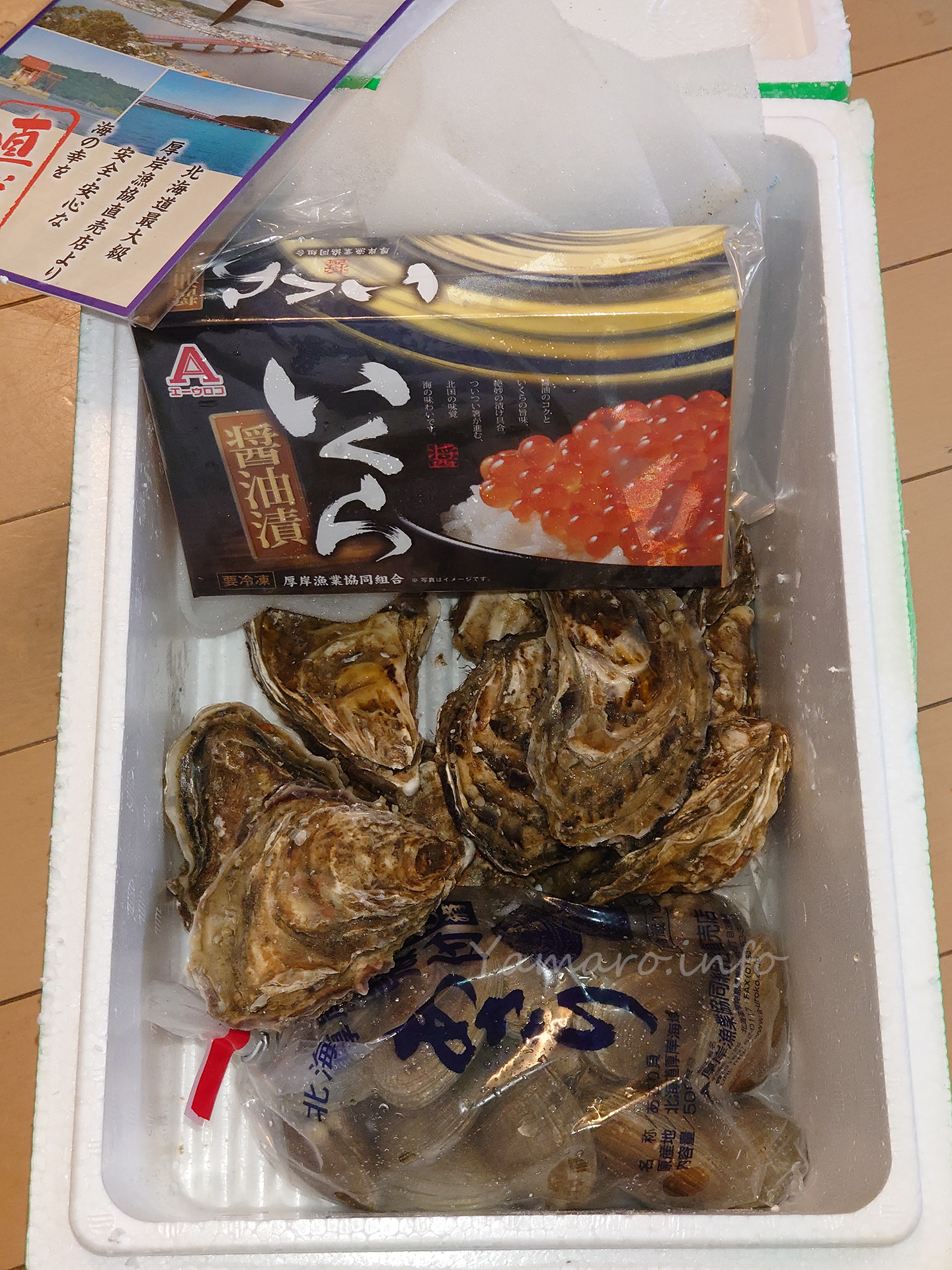 北海道は厚岸町からの直送です。いくらと牡蠣とあさり!