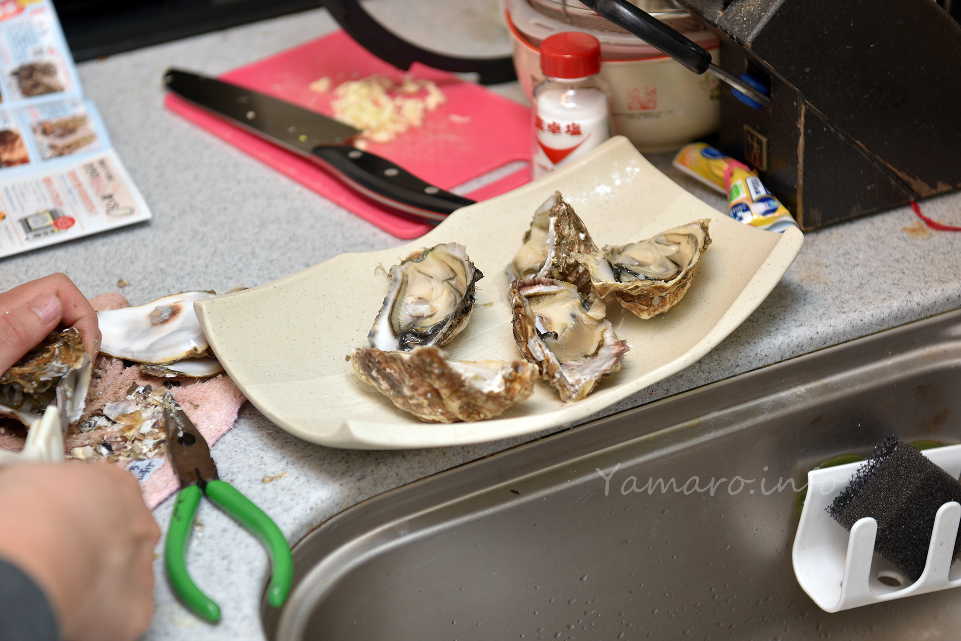 動画見たけど、牡蠣全然開けられなくって。ペンチを持ち出して、殻の一部を割ってから開けましたが、これは大変ですわ。