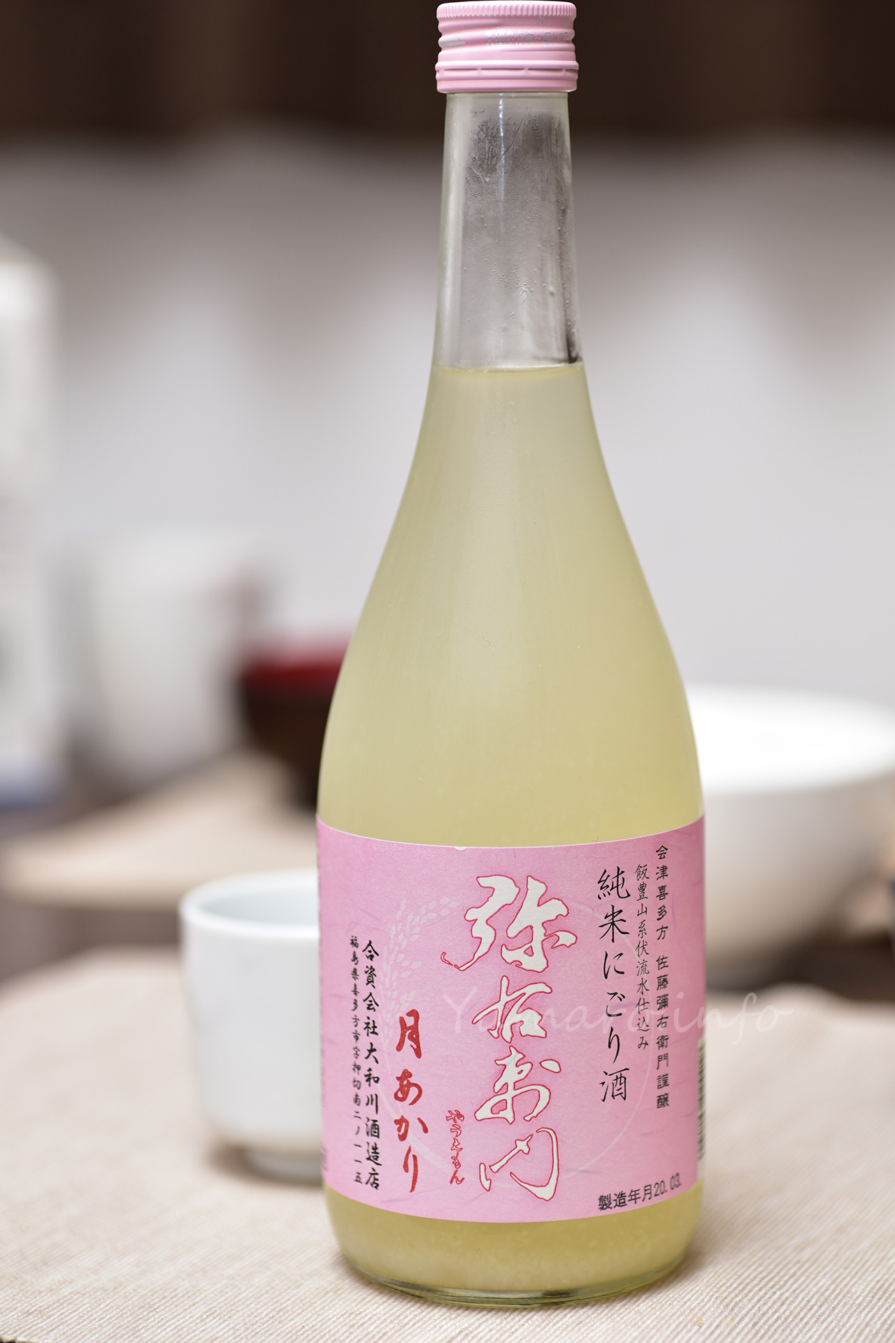 弥右衛門(やうえもん)月あかり 純米にごり酒、酒米は、前回飲んだ活性にごりと同じ「夢の香」。日本酒度は-15と甘口です。