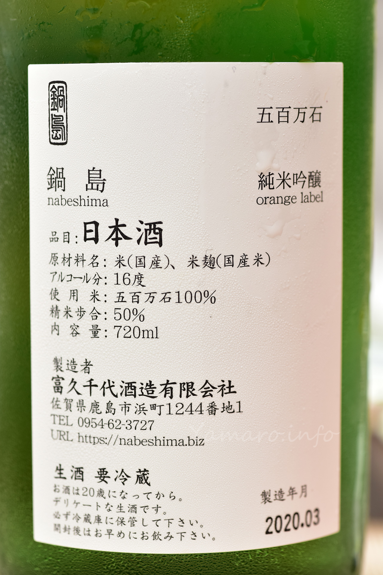フレッシュさは、プチプチの微発泡も相まって、飲みやすさと口当たりの良さを演出しています。裏鍋島がもう少し芳醇さを押した感じと違い、こちらは口に含んだときから爽やかさが引き立っています。