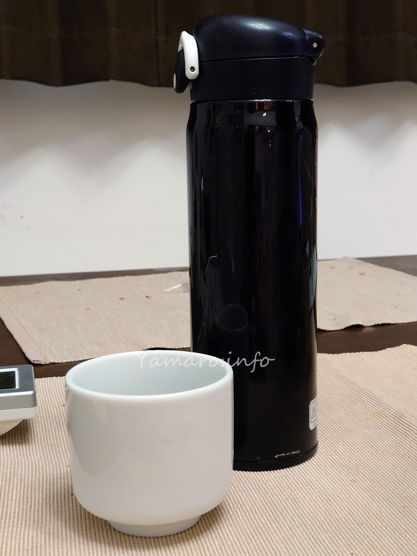 ただ、水筒からダイレクトに飲むのは、やっぱり香りも分かりづらいし雰囲気も出ないので、お猪口に移しましたが。