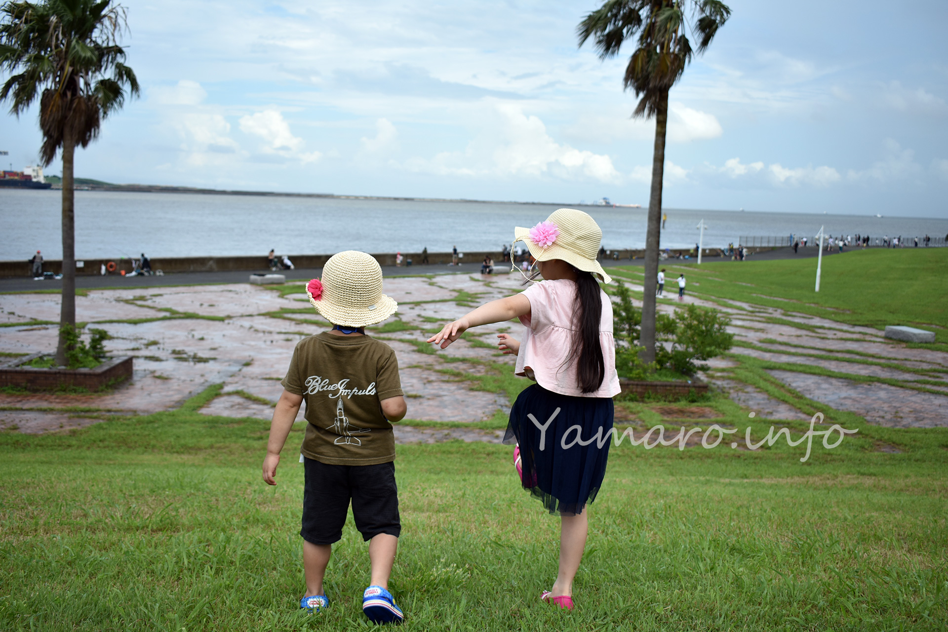 7月26日、天気予報は前日までは晴れだったのが、朝から雨。予報も曇り時々雨に変わっていて、ああ今日は1日家かなぁと思っていたけど、昼前になり、急に空が明るくなって晴れに。これはチャンス、ということで、子供たちを連れて城南島海浜公園に行ってきました。