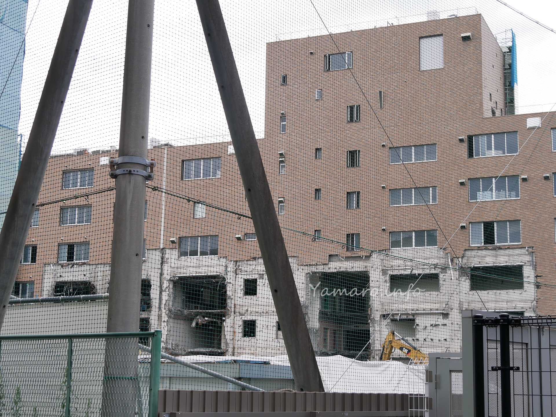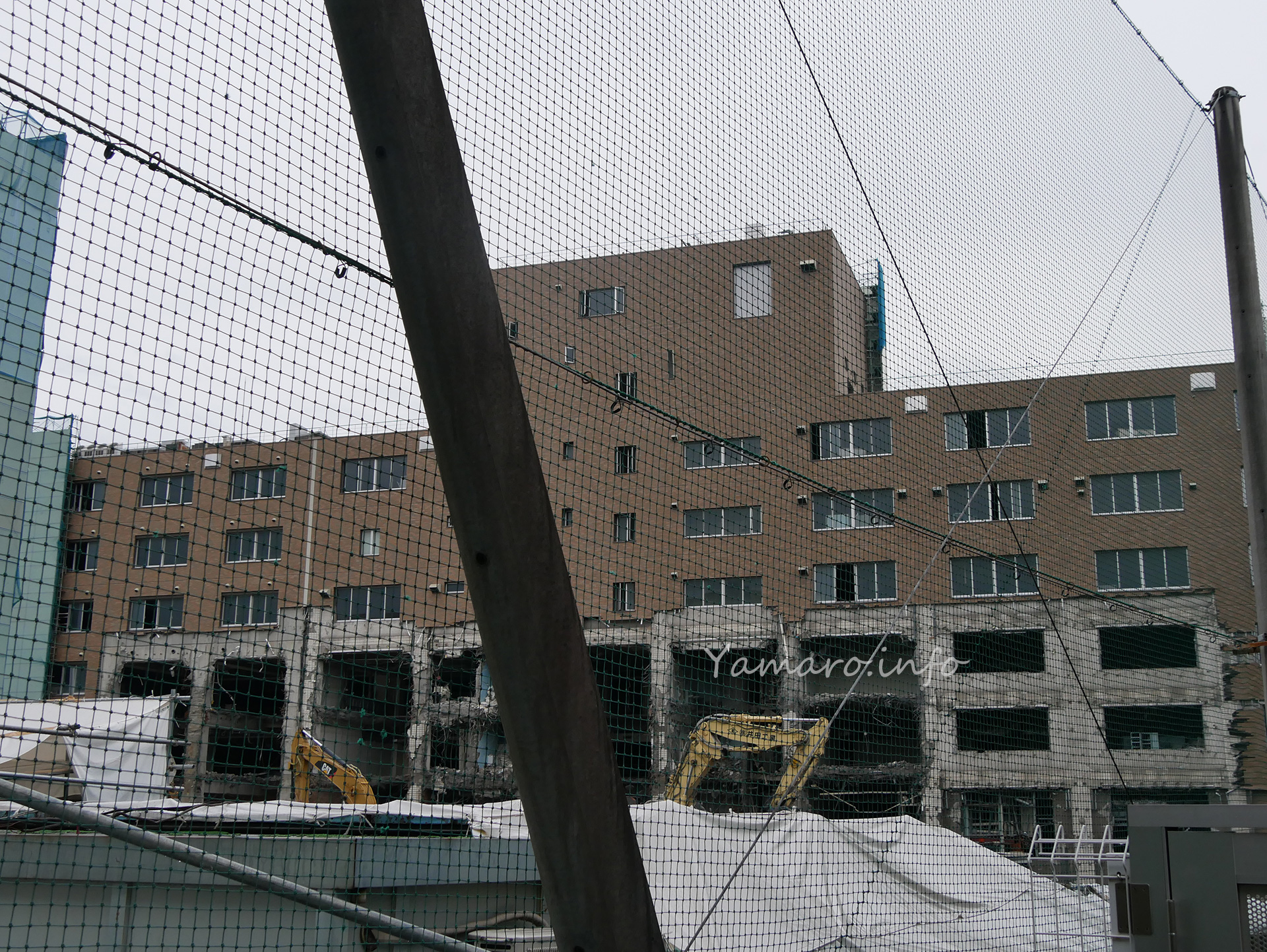 先週と先々週の写真を比較してみると、先々週13日時点で張られていた防音壁が、先週20日では既に上の方から外されて建物が見える状態になっているのがわかります。写真を撮って比較して気づくという典型ですね。