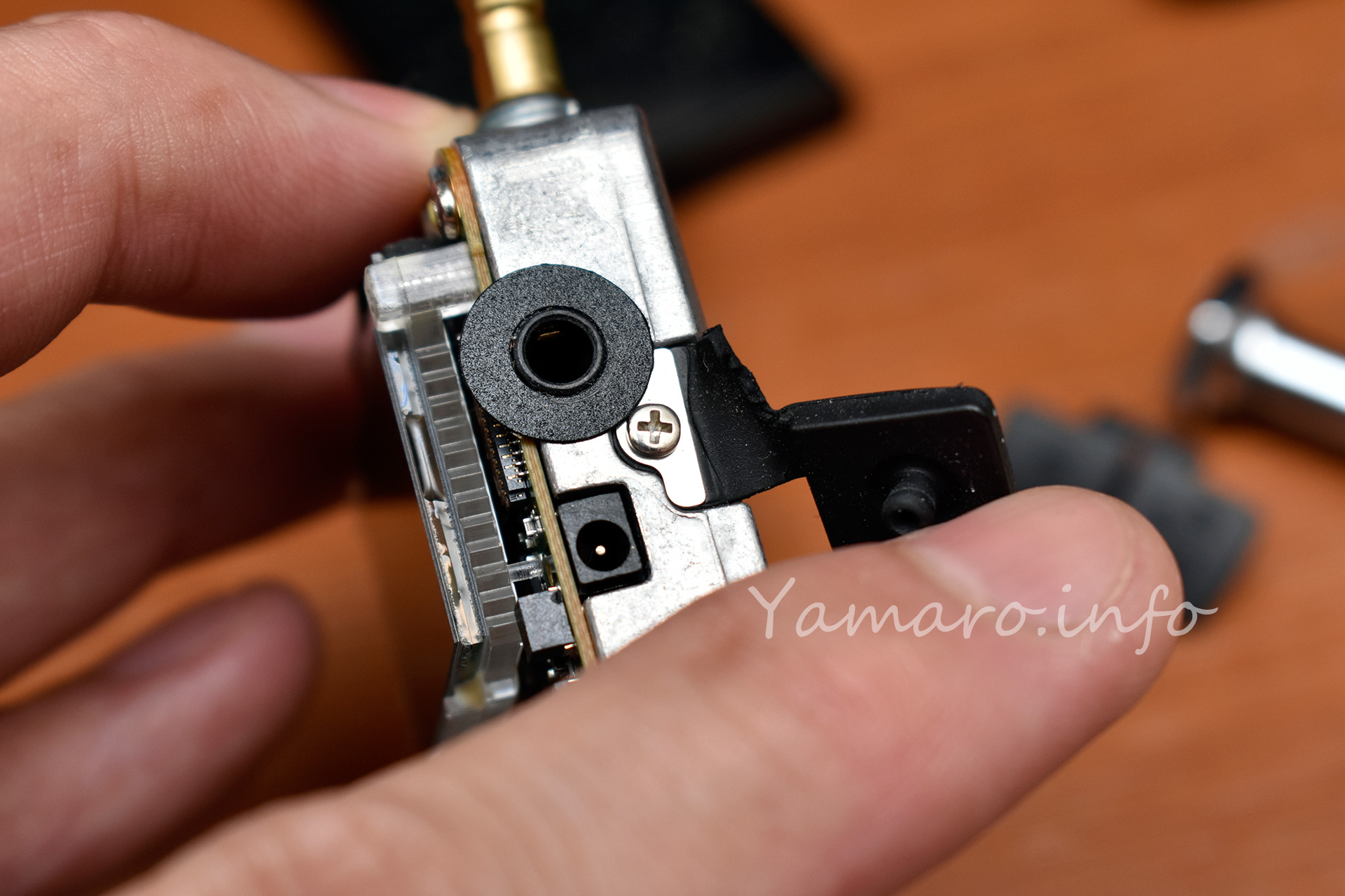 分解は簡単ですが、端子カバーを交換してネジ止めする際、金属のプレートがイヤホン端子の周りに貼られている黒い円のカバーの上にならないようにだけ注意しましょう。