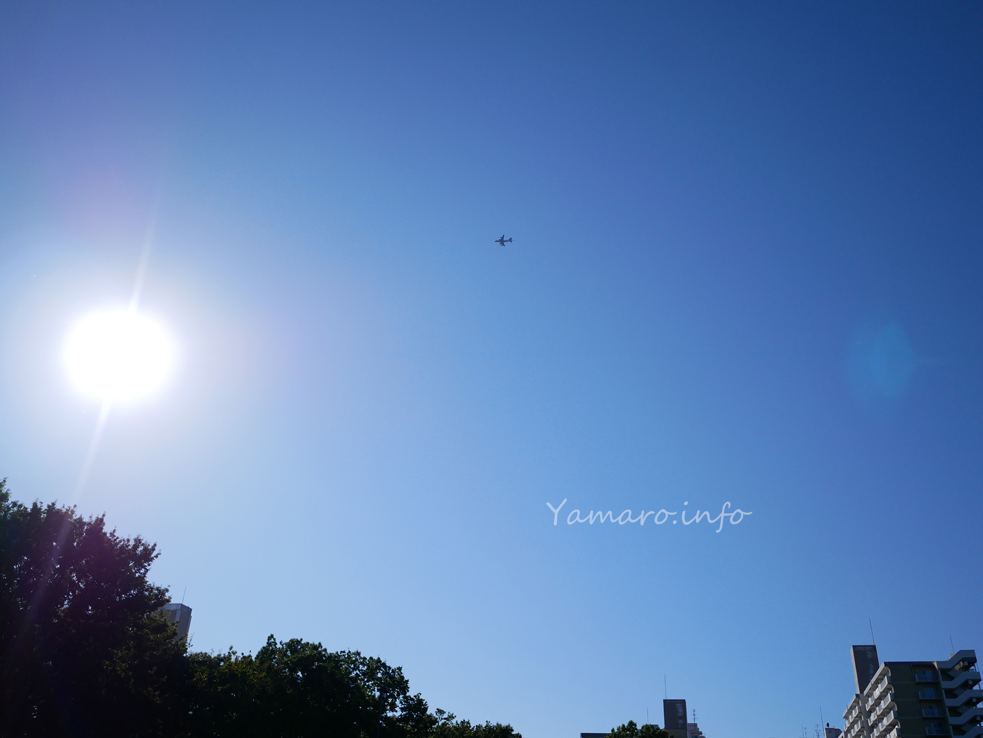 見上げると、海上自衛隊のP-1哨戒機が。厚木基地に向かっているのでしょう。絞り開放のままで撮ってしまった…。でもちゃんと絵になりますね。