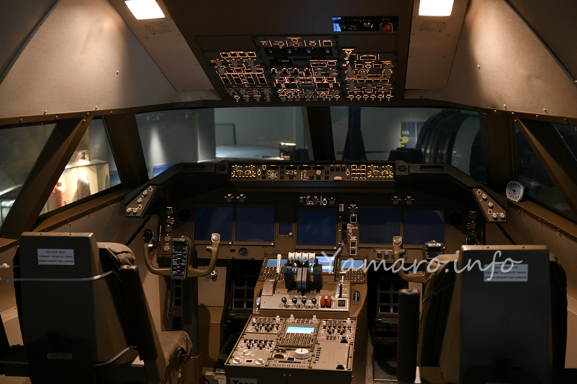所沢航空発祥記念館よりもマニアックすぎず、小さな子供から楽しめる感じになっています。もちろん、大人から見ても楽しめますが、細かい航空機の歴史というよりは、成田空港とエアラインに関する資料や、コックピット、シミュレータの体験や、B747の内部体験、といった体験型の展示が多いですね。