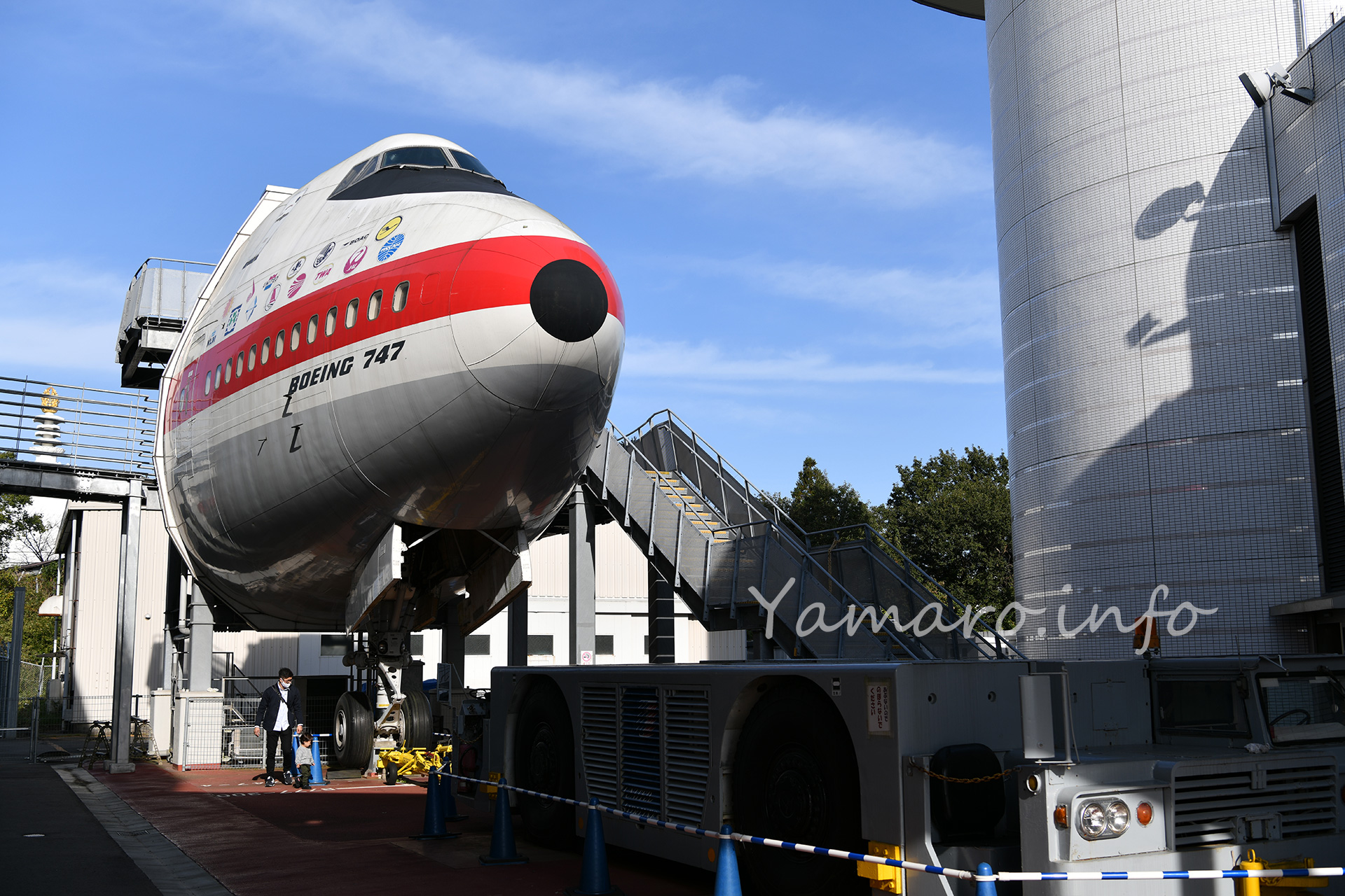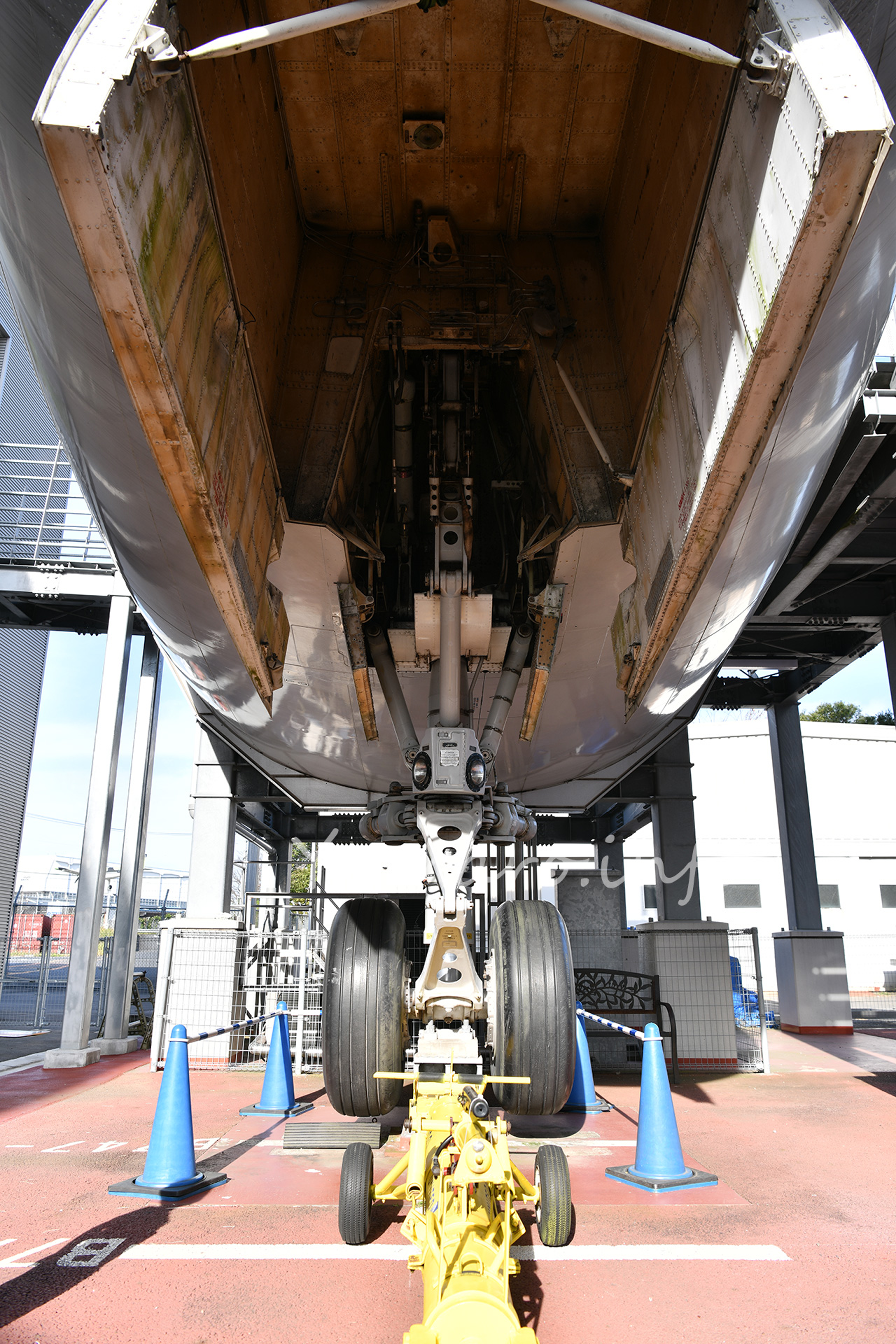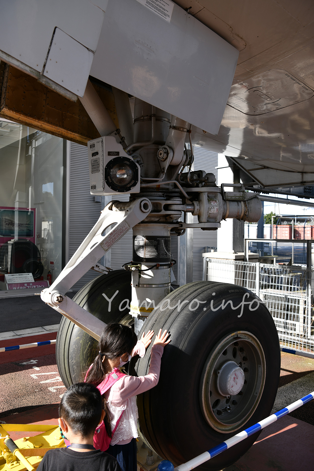 B747の展示、予約いっぱいで機内は見られなかったけど、外から楽しめました。ランディングギヤの格納、こうなっているのか~