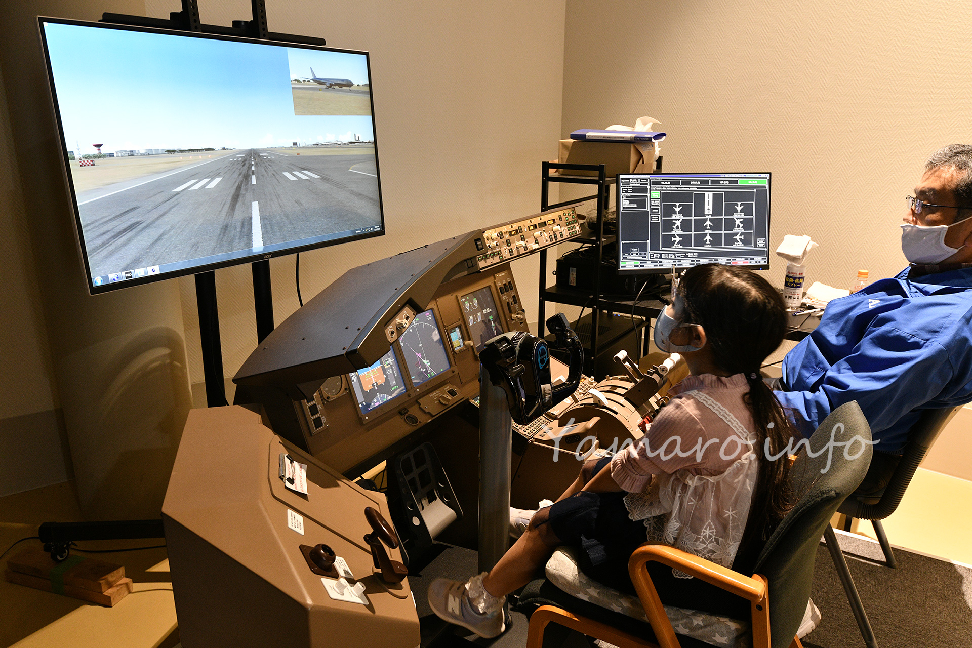 1回500円で、小1からできるフライトシミュレーターを娘が体験。かなり本格的で、普通にこれでパイロットの訓練ができるとのこと。計器類は全て本物に準じています。オートパイロットで、ある程度は方向を保てます。娘は小さいので、ラダーペダルは足が届かないですが、操縦桿だけで着陸まで行いました。まあ半分はオートパイロットの力ですが。