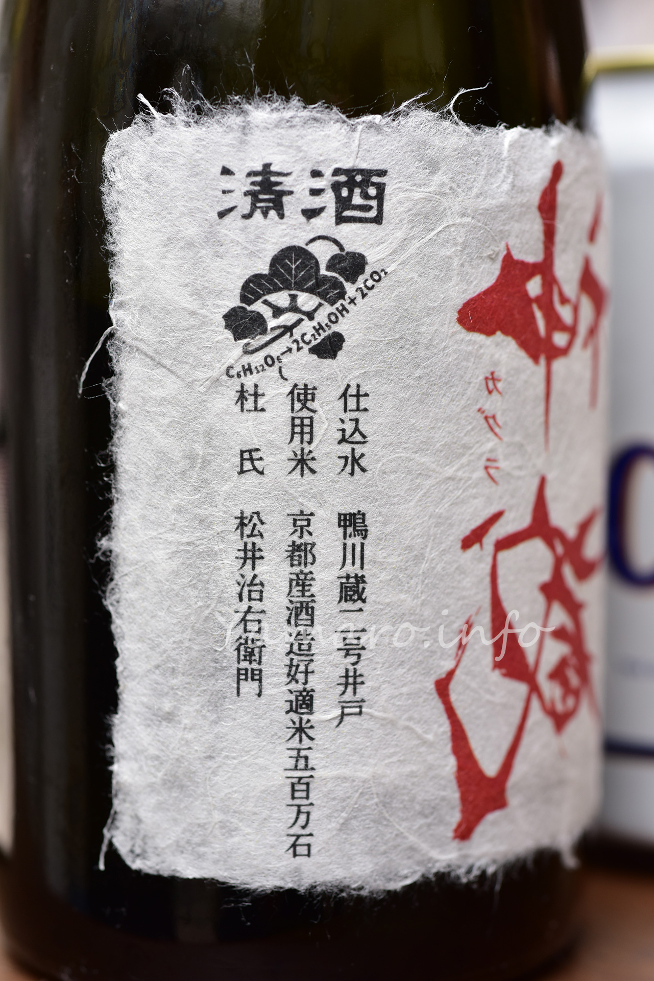 仕込みずいは井戸水、酒米は京都産五百万石です。精米歩合50%の大吟醸、ここのところ普通酒やら本醸造酒をよく呑んでいたので、久しぶりの大吟醸。