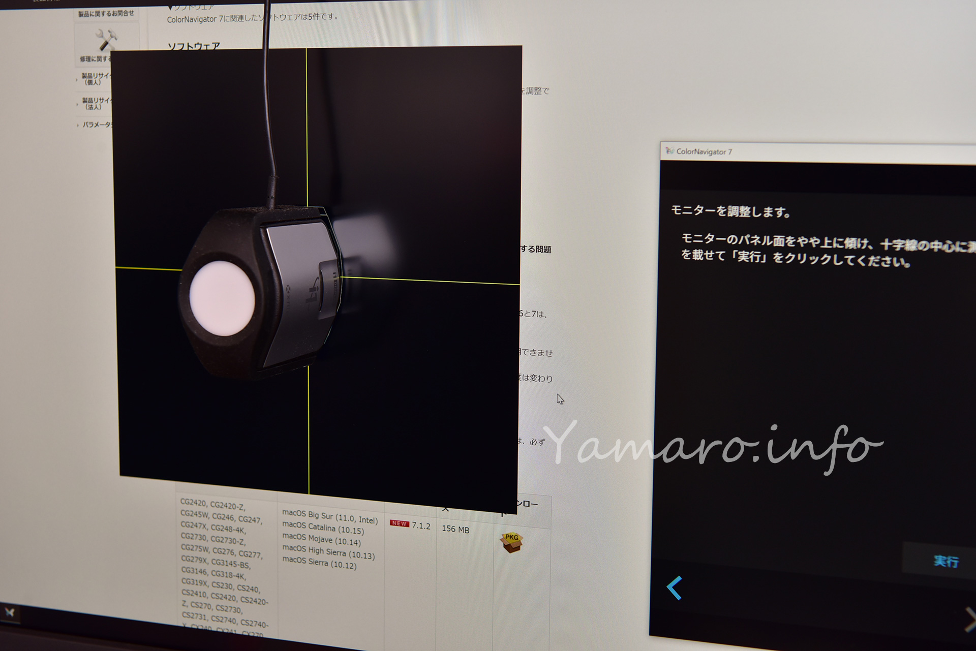 あとは、キャリブレータをディスプレイを傾けて密着させて、キャリブレーションするのみです。
