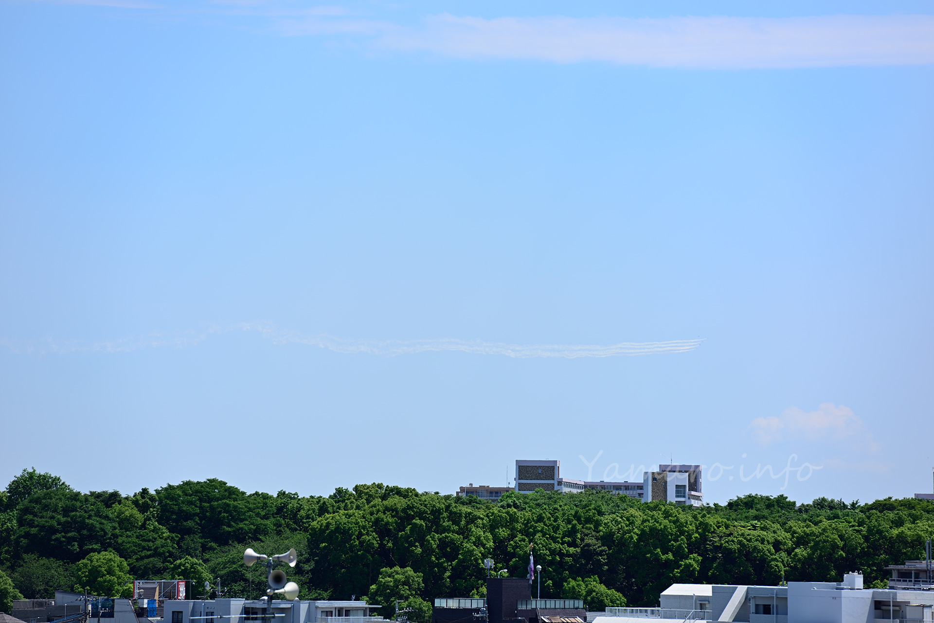 ブルーインパルスが医療従事者応援のために、東京都上空をフライト、なんとか家から見えるかな~と望遠レンズをセット、1200mmでも豆粒でしたけどね。