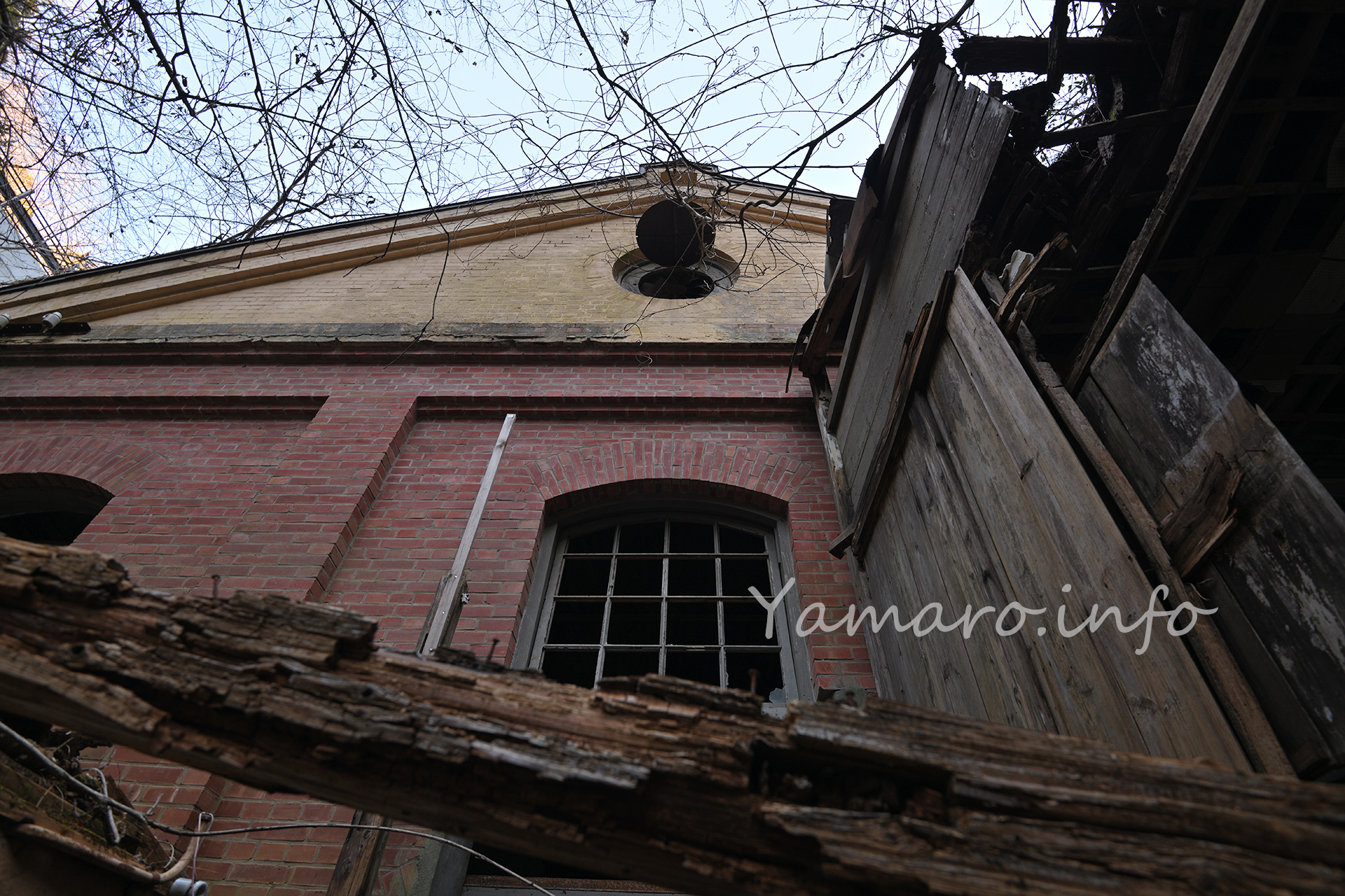 併設された木造の職員待機所は崩壊が進みつつありましたが、レンガ造りの発電所は、大正時代の面影を今なお残していました。