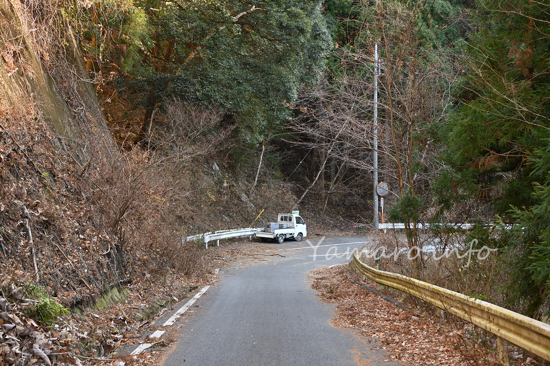 幸い、お昼近い時間、寒いけど風はなく、歩いているとポカポカしてきますね。誰も居ない道を、カメラ1台だけで、トボトボと歩きます。道は…全然エスティマでも走れそうな状態。途中少し小さな落石があった程度。