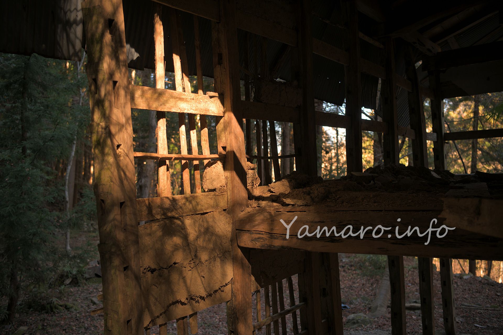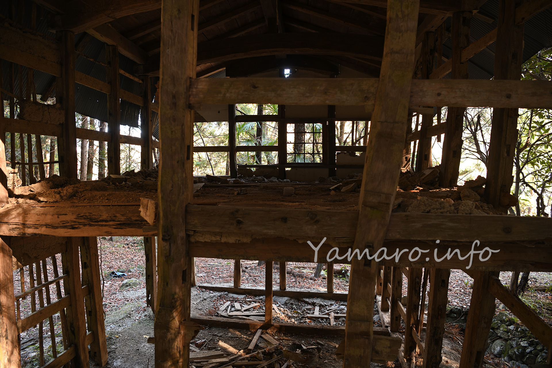ご覧の通り、すでに土壁の多くは喪失、柱も根元部分は腐ってズレたり痩せたりしています。