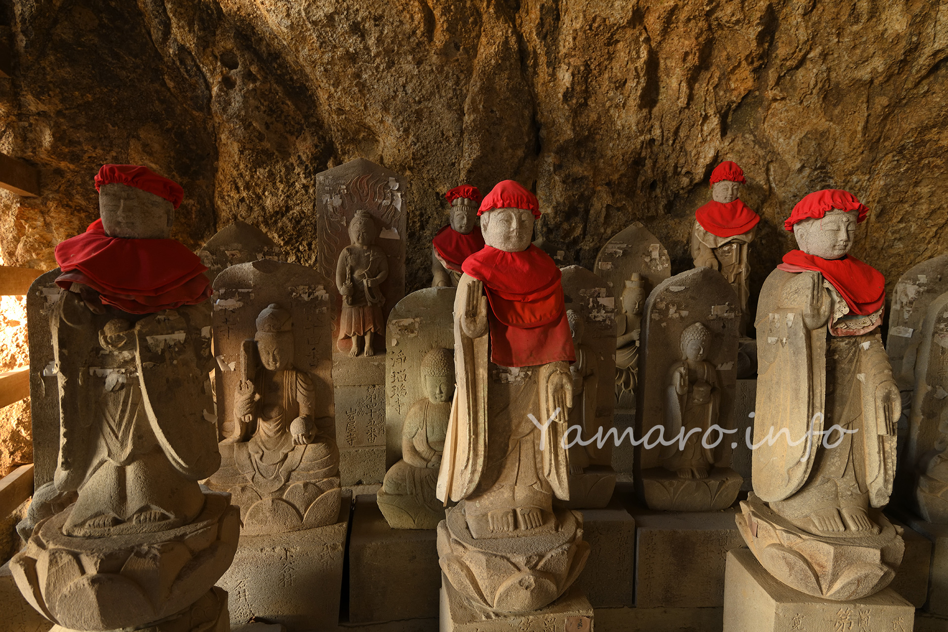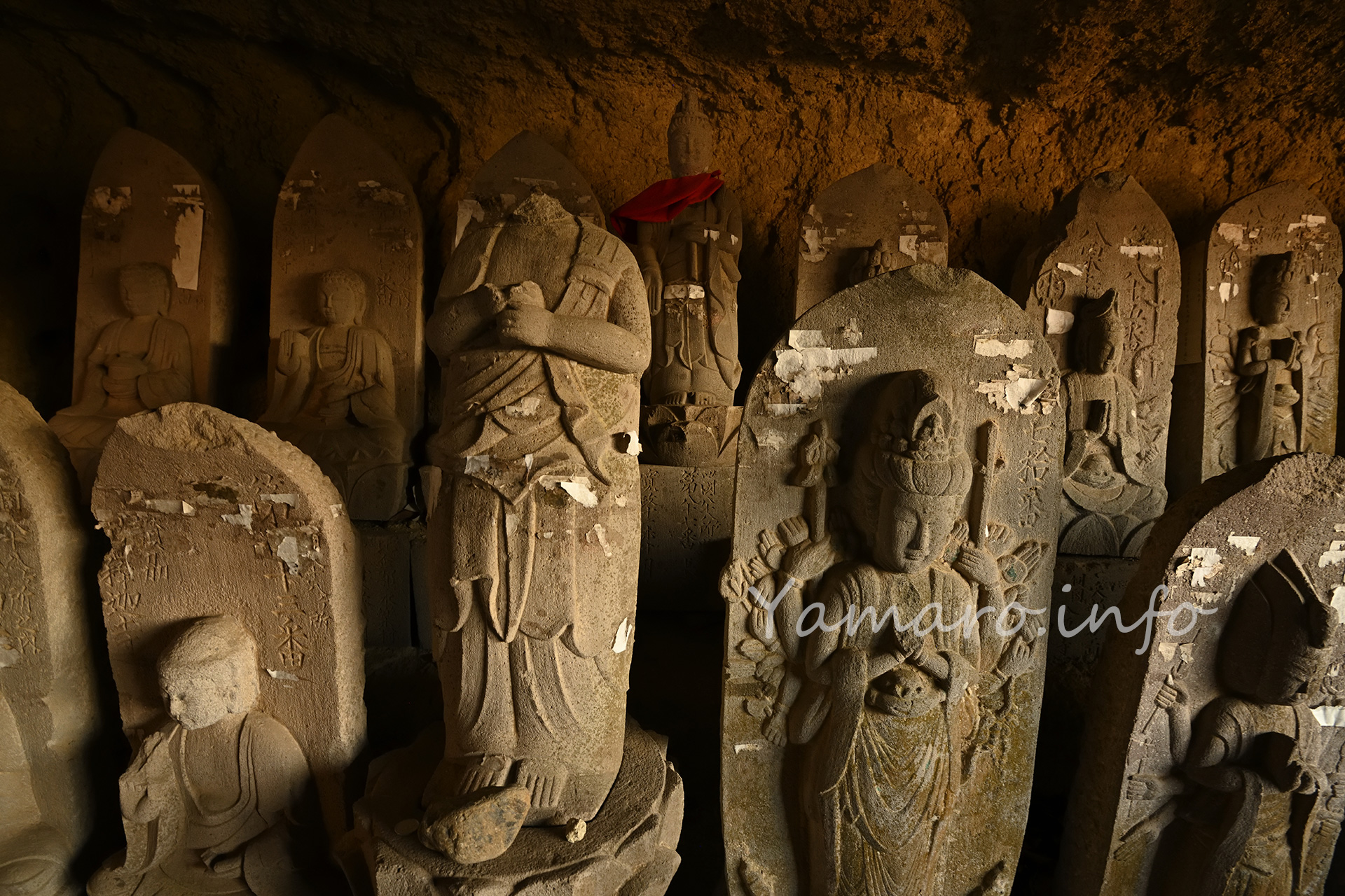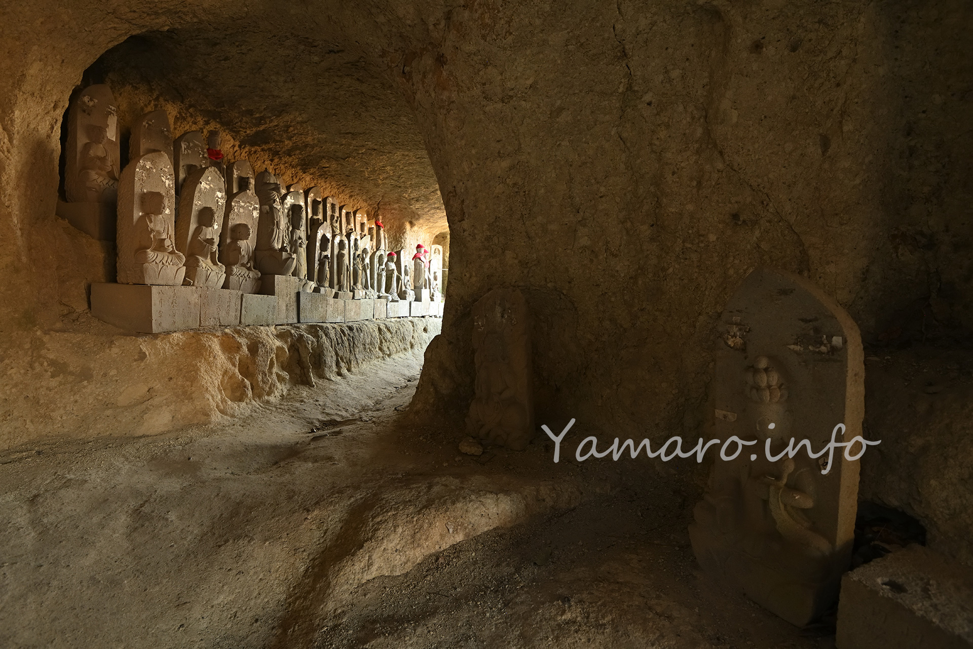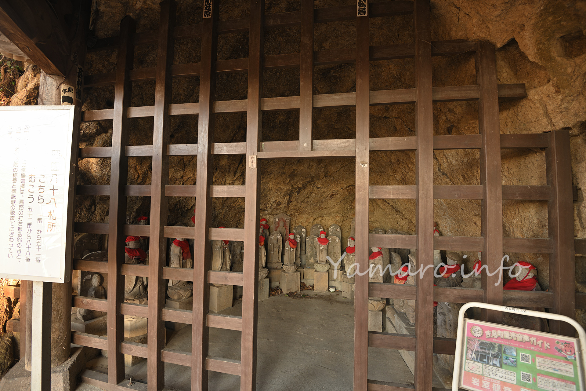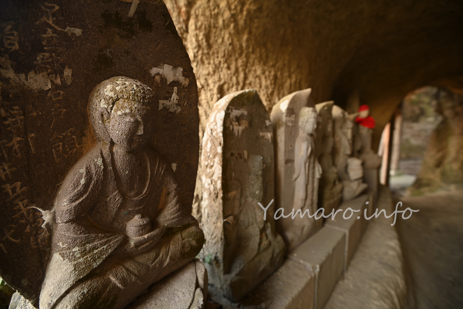 1階部分の左右にある洞窟内には88体の石仏が収められています。