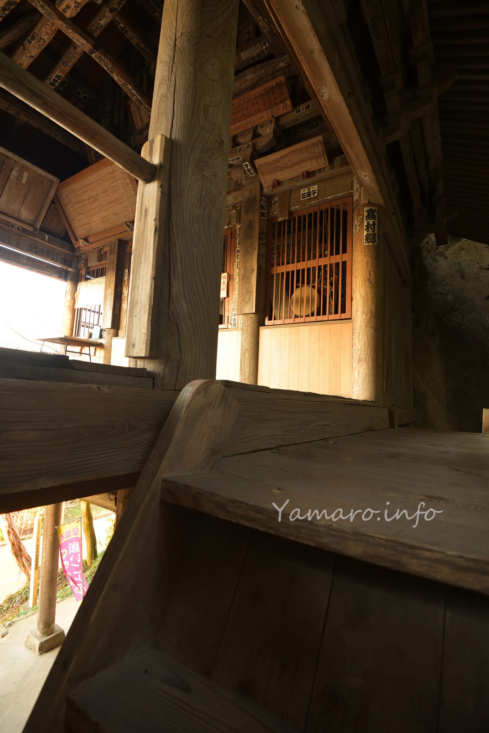 お堂の造りは懸造(かけづくり)で、急斜面や崖など高低差が大きい場所に用いられる建築様式だそうです。