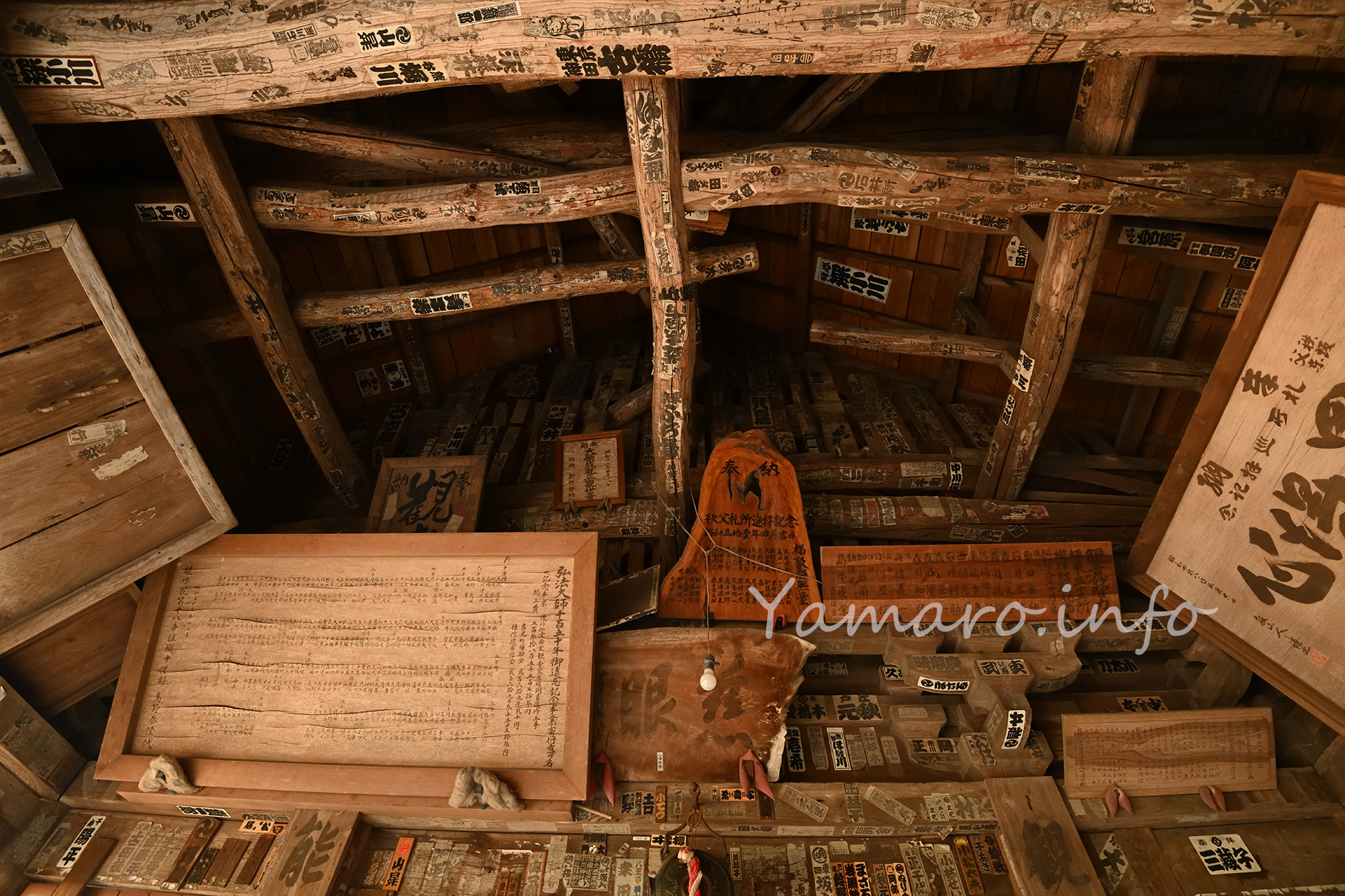 いつ頃から貼られているのかわからない御札や奉納などが多数。歴史を感じますね。