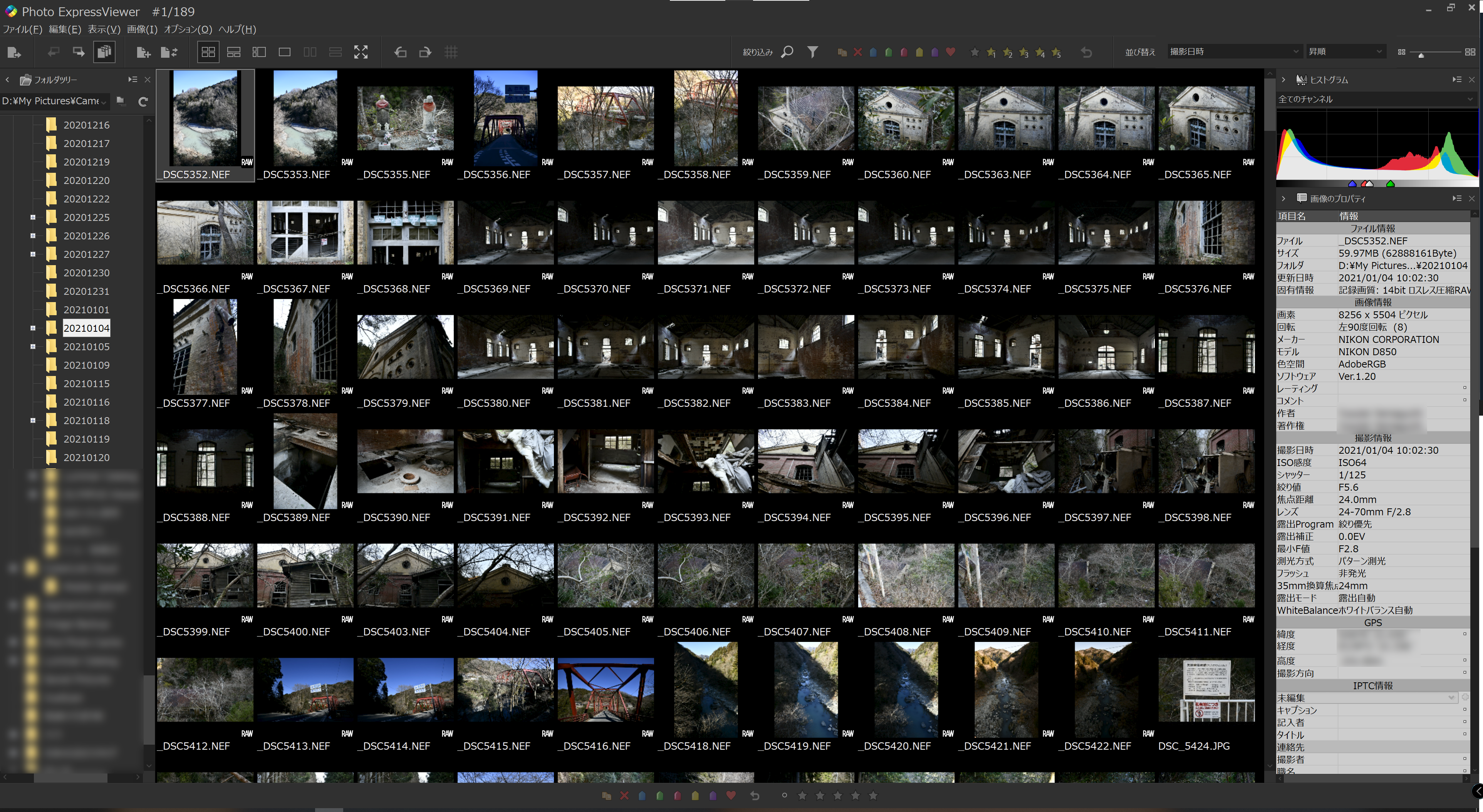 確かに、ViewNX-iよりは速い気がします。ただ、ちょっと私の環境では不安定な感じかな。並べ替えを撮影日順にしていると、表示させるフォルダを買えるだけでしばらく時間がかかります。