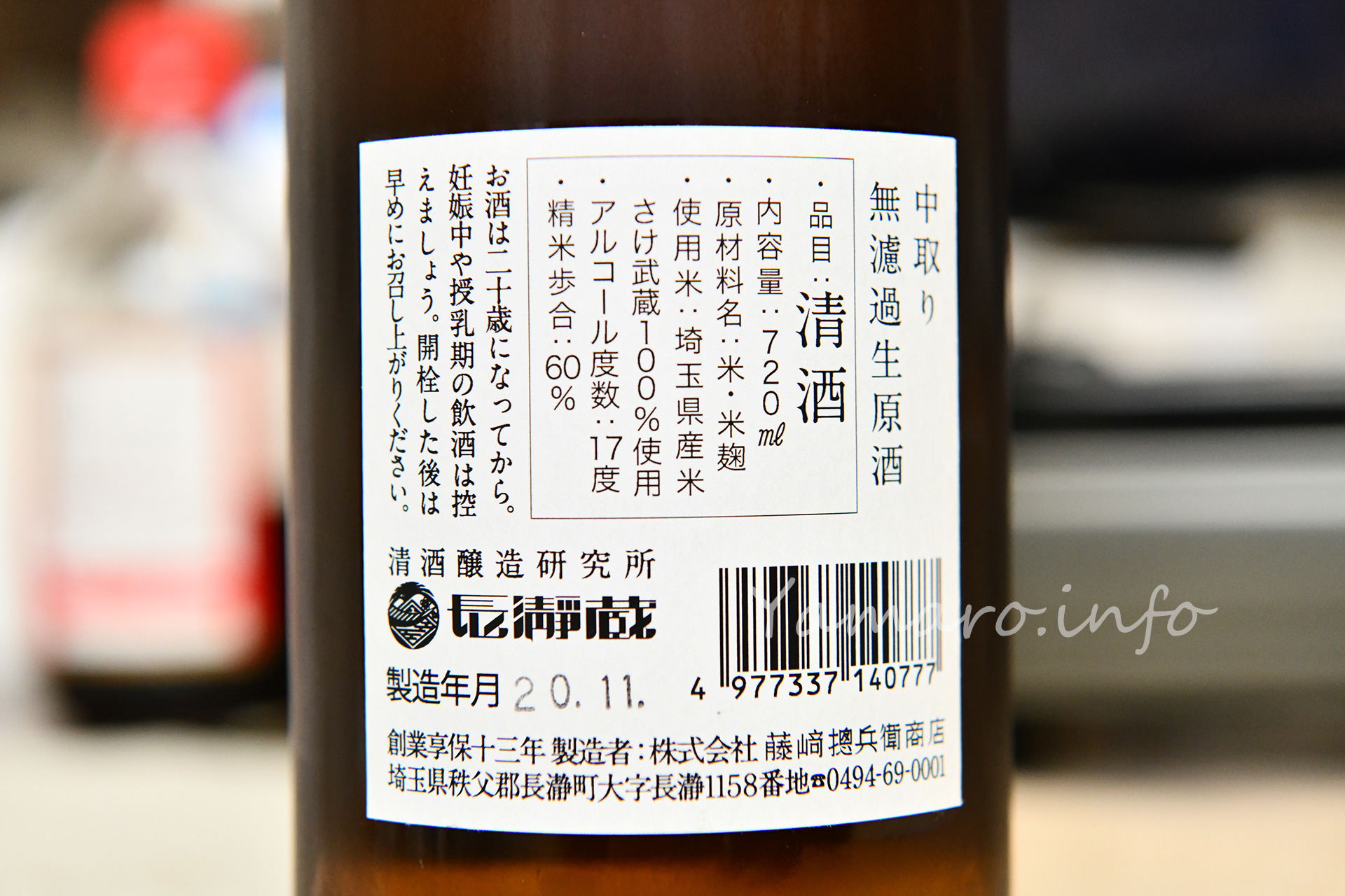 酒米に埼玉県産の「さけ武蔵」を使用した、長瀞蔵を代表するお酒。