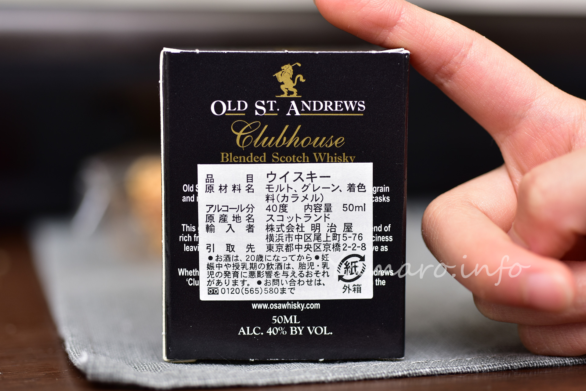 で、ウイスキーは呑むけど、そんなに詳しくもないですが、このウイスキーはクラブハウスという名前がついているように、ゴルフがモチーフとなっていて、瓶もゴルフボールのようなディンプルがついています。