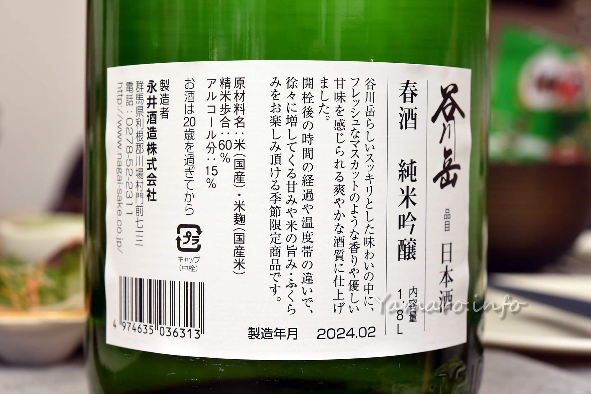 3月の群馬流行で買ってきたお酒、まだまだ続きます。こちらは永井酒造、「水芭蕉」ブランドのお酒は関東圏のヤオコーでもよく売られていますが、昔からあるブランドは「谷川岳」です。