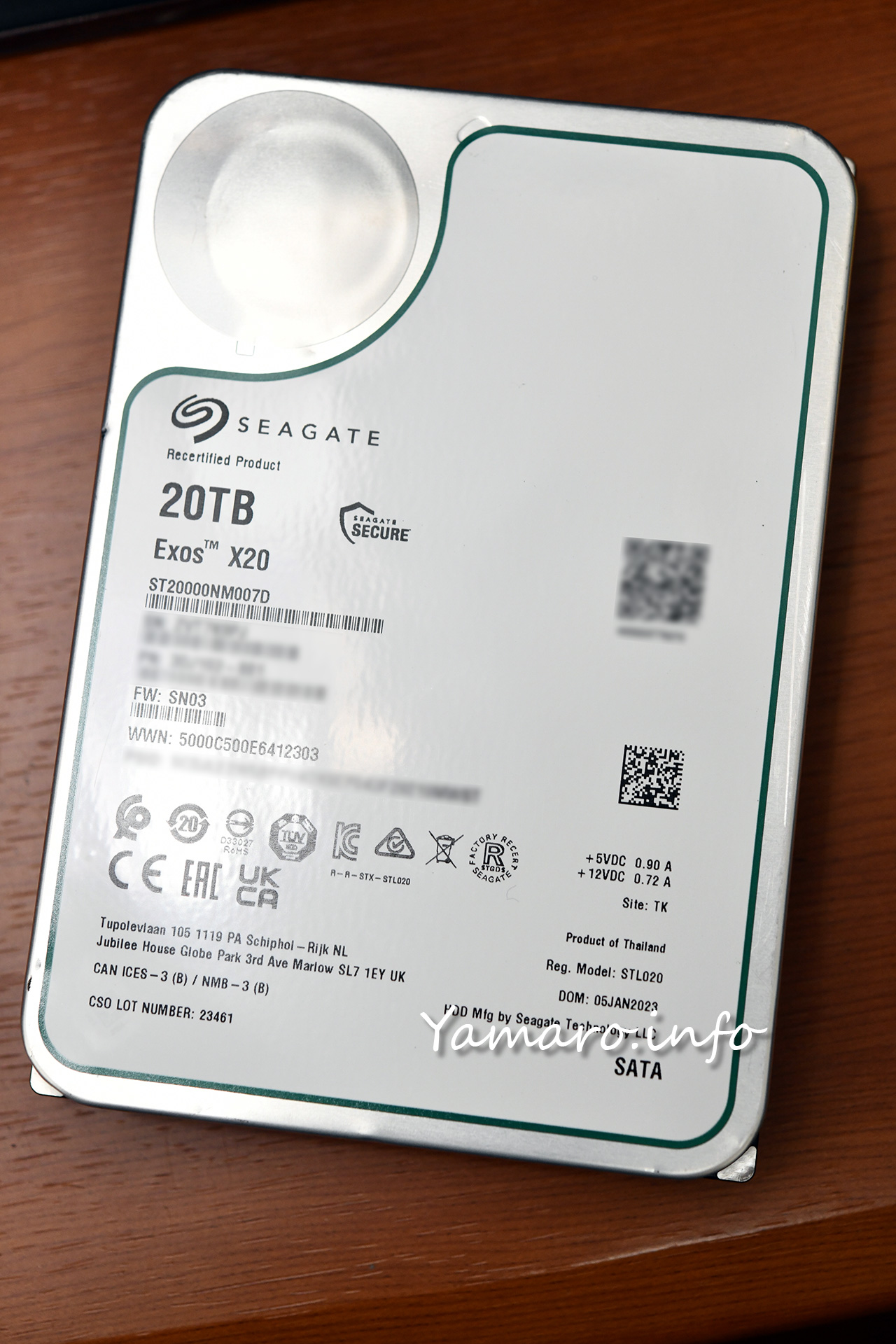 気がつけば16TBのHDDの残量が1TBなのでSeagateのExos X20 20TBを買ってみた