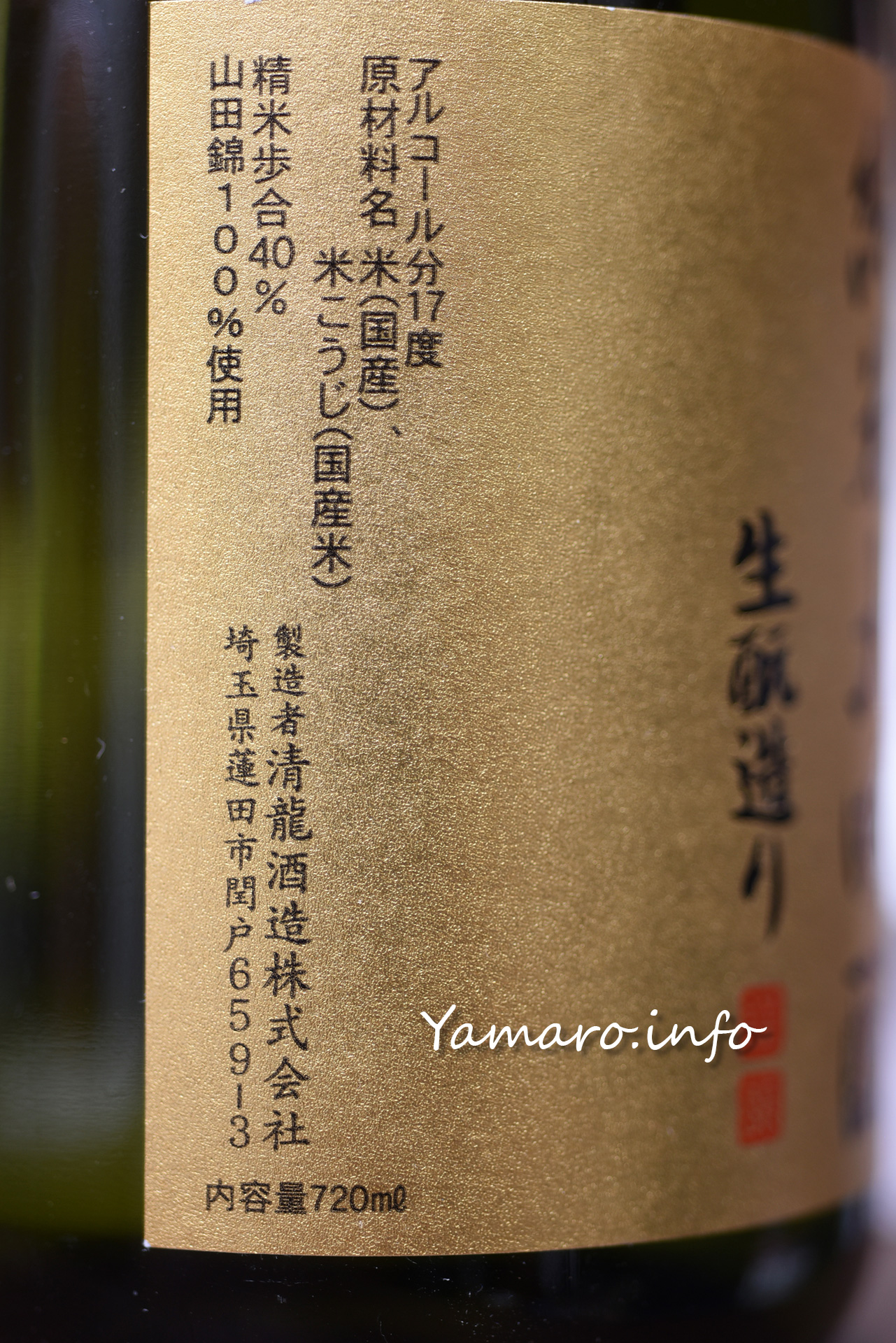 酒米の定番である山田錦を精米歩合40%で。日本酒度は瓶には書かれていませんが、+3とやや辛口です。