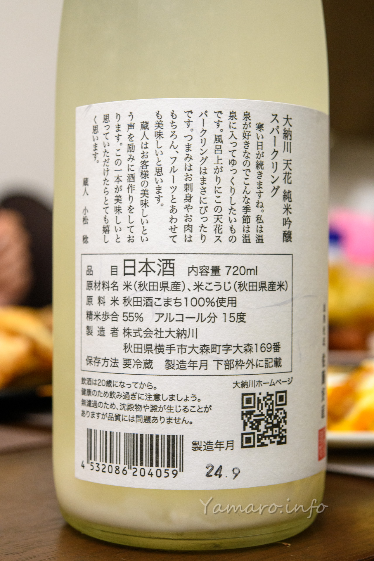 吹き出し系ではないようですが、スパークリングかつ濁り系ですね。秋田のお酒なのでまず間違いないはず。