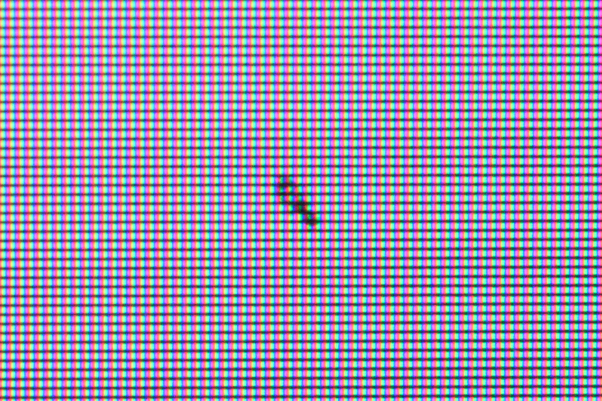 やっぱりそうだったか~! いわゆる液晶のドット欠けだと、このように複数のピクセルでいきなり発生したりすることはほぼないですし、通常ドット欠けは特定のドットが点灯しっぱなしか真っ黒のままだったりするので、この症状のように暗くなる、というのはあり得ないのです。