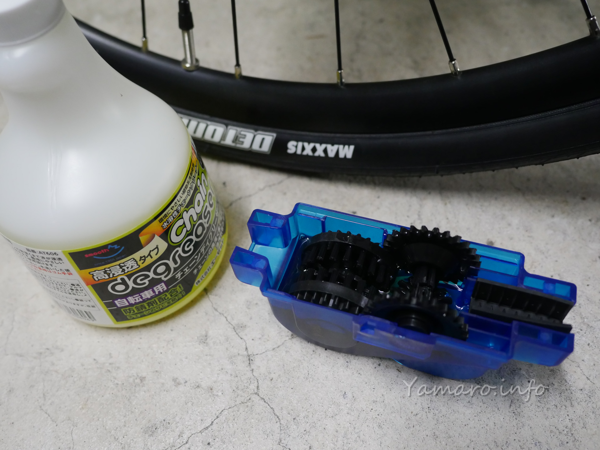KhodaaBloomのクロスバイクを買ってすぐに割と汚れの多い撮影地での機材運搬&移動で使ったり、この2ヶ月近くそこそこ走ってチェーンやボディも汚れていたので、AZのチェーンディグリーザーとバイクウオッシュを買ってメンテナンスしてみました。
