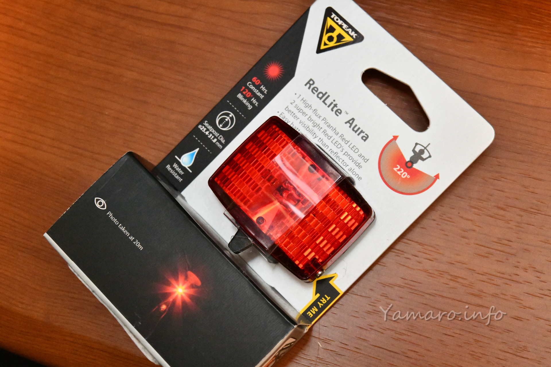 他メーカー含めいろいろ出ていて、最近はUSB充電がトレンドですが、使用時間などを考えると安価なボタン電池のモデルで十分かなと思い、ラックに取り付け適合されているRedkite® Auraにしてみました。