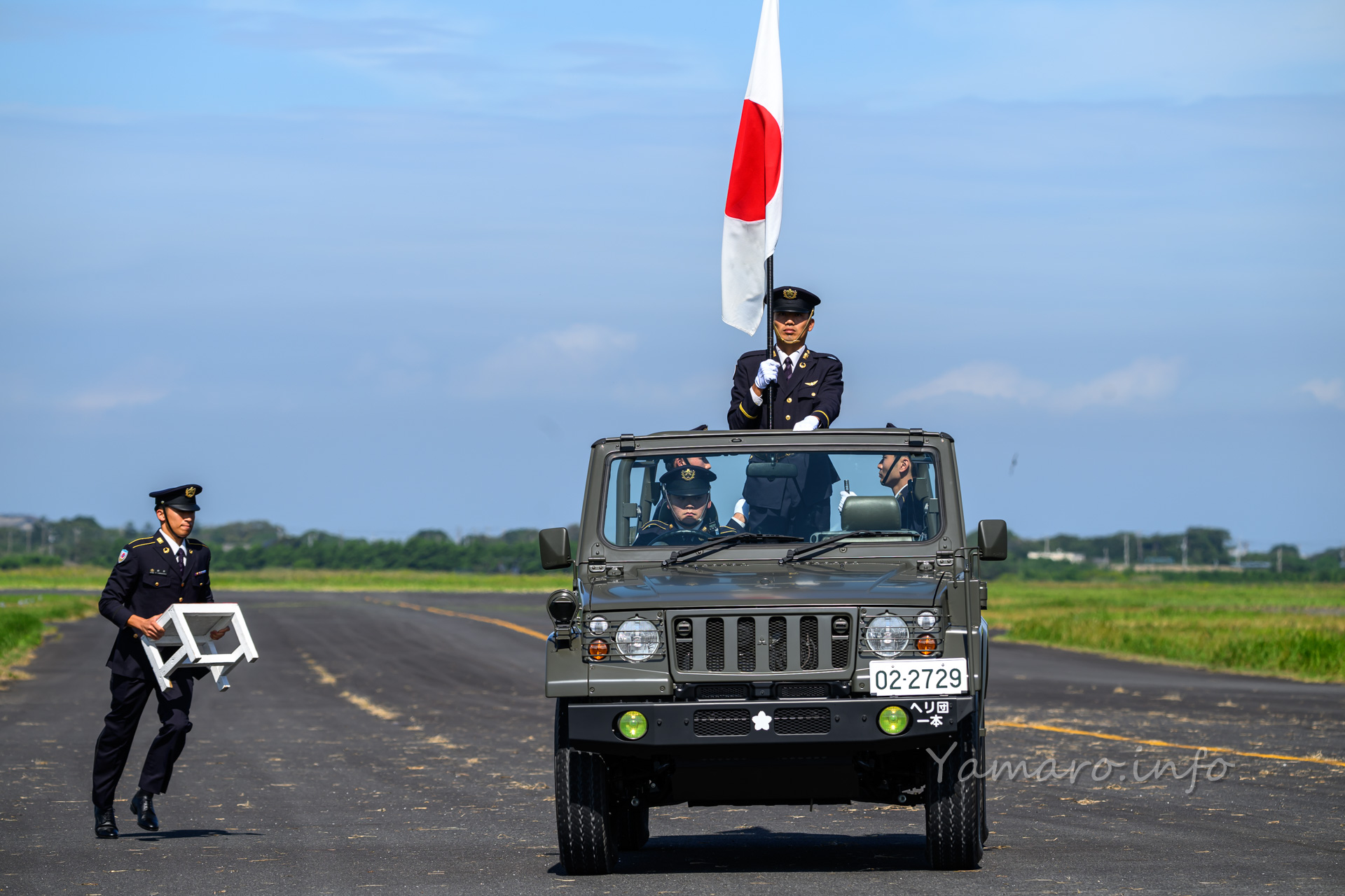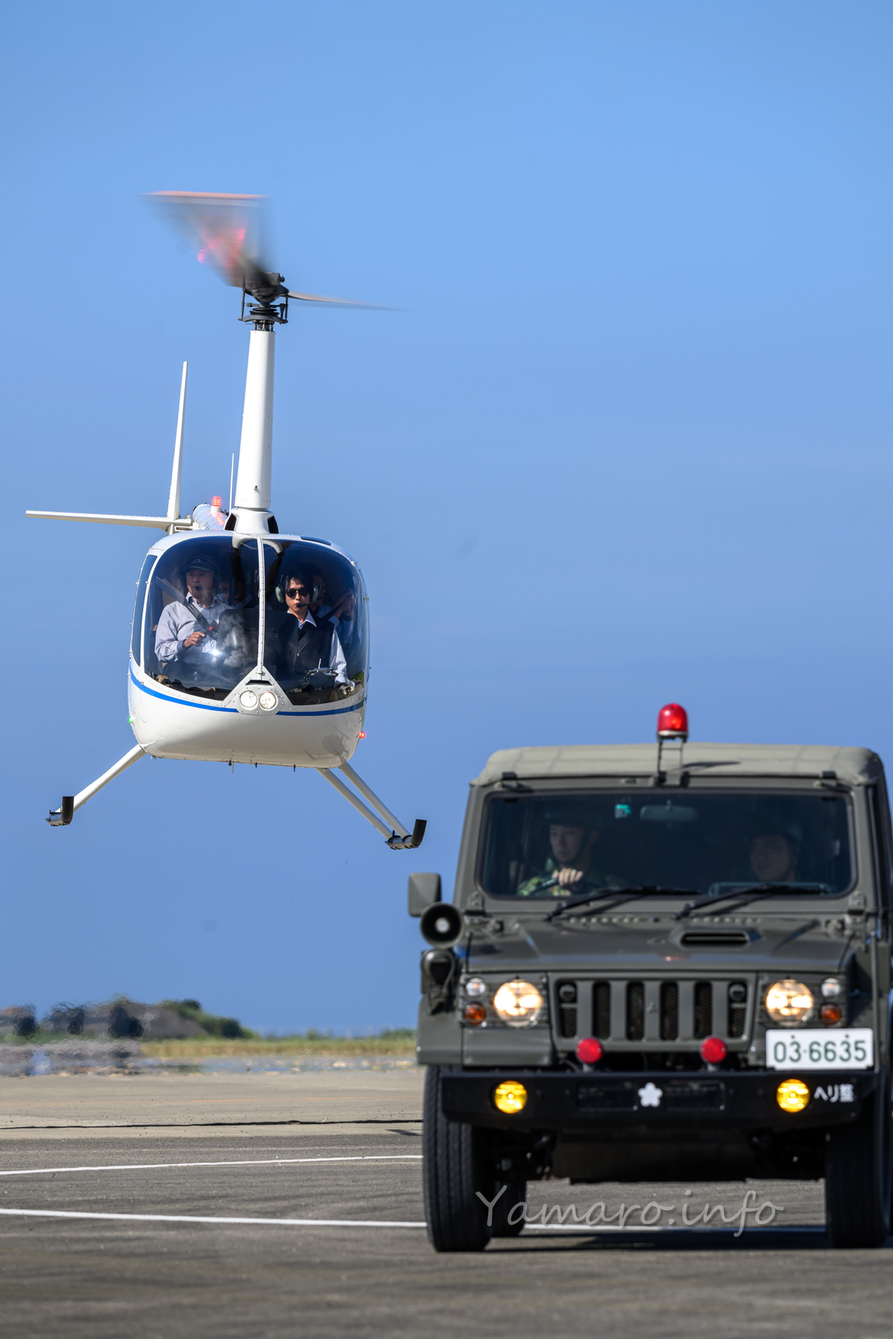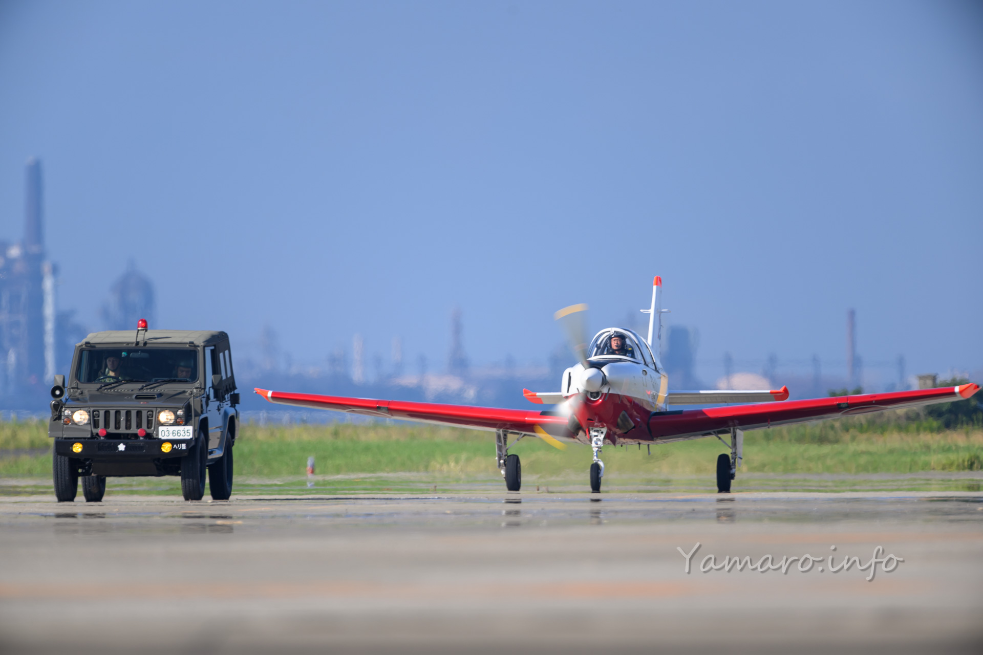 毎年恒例、朝のゲスト機飛来がここの醍醐味の1つ。先導車の1/2tトラックがお出迎えします。