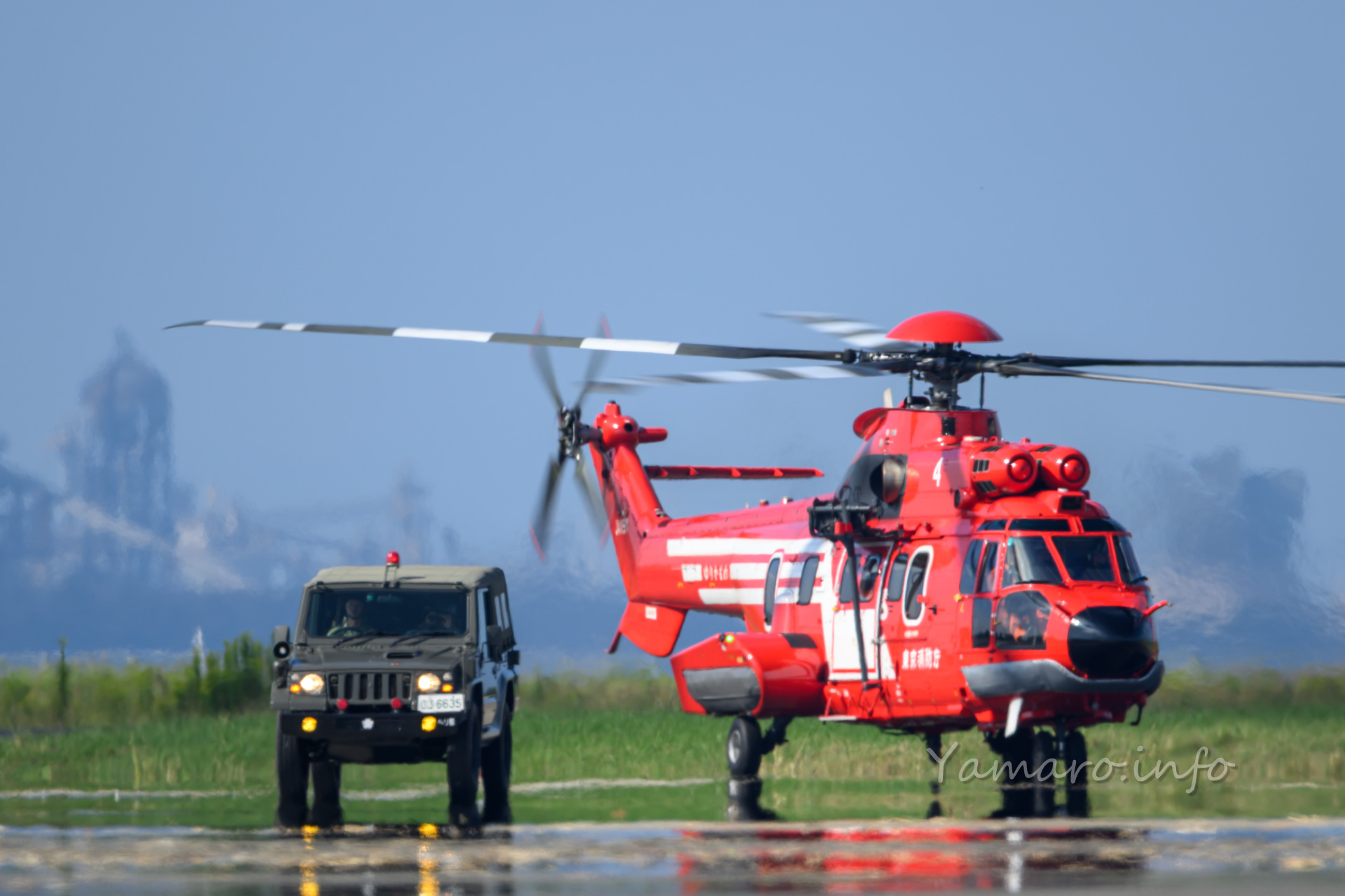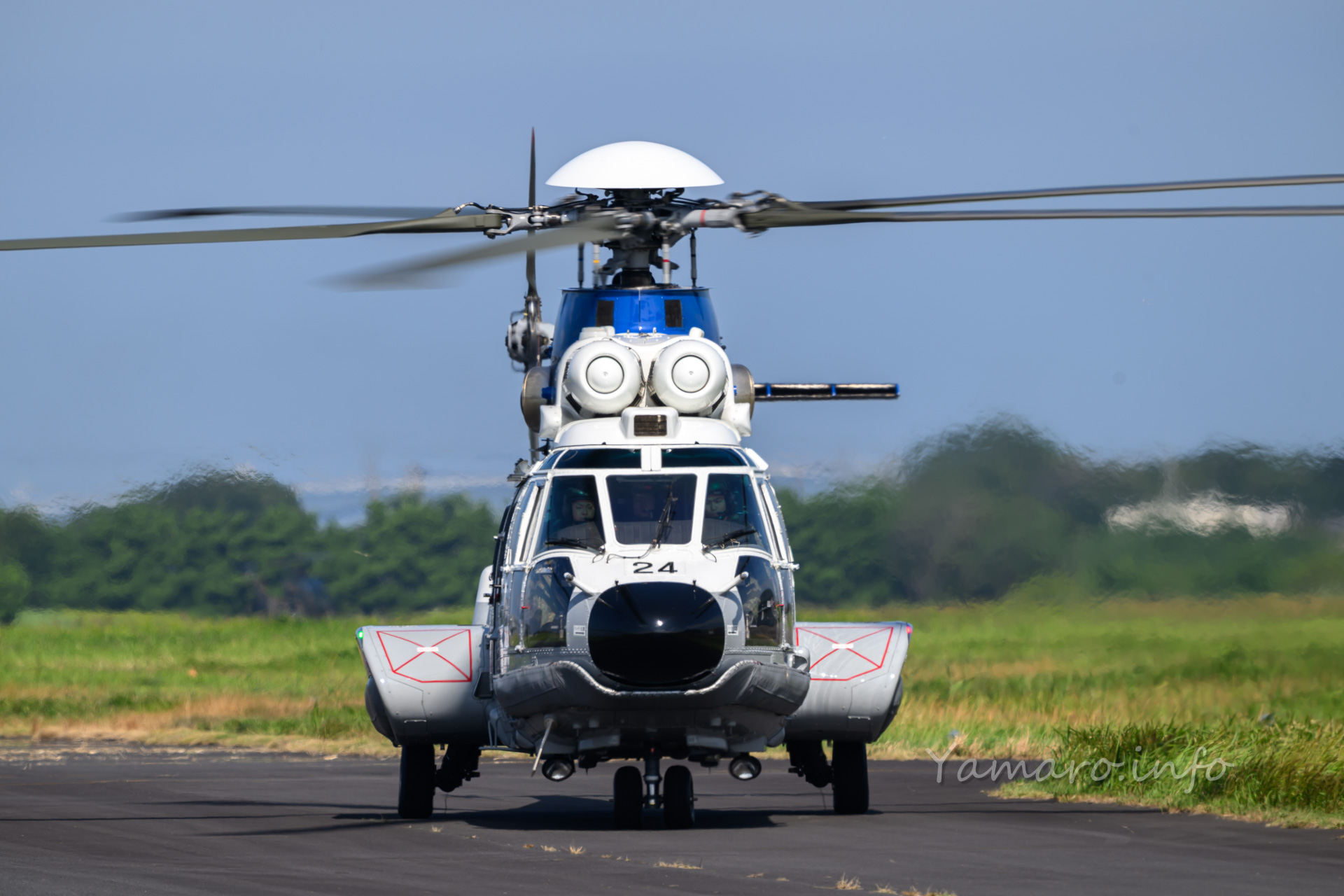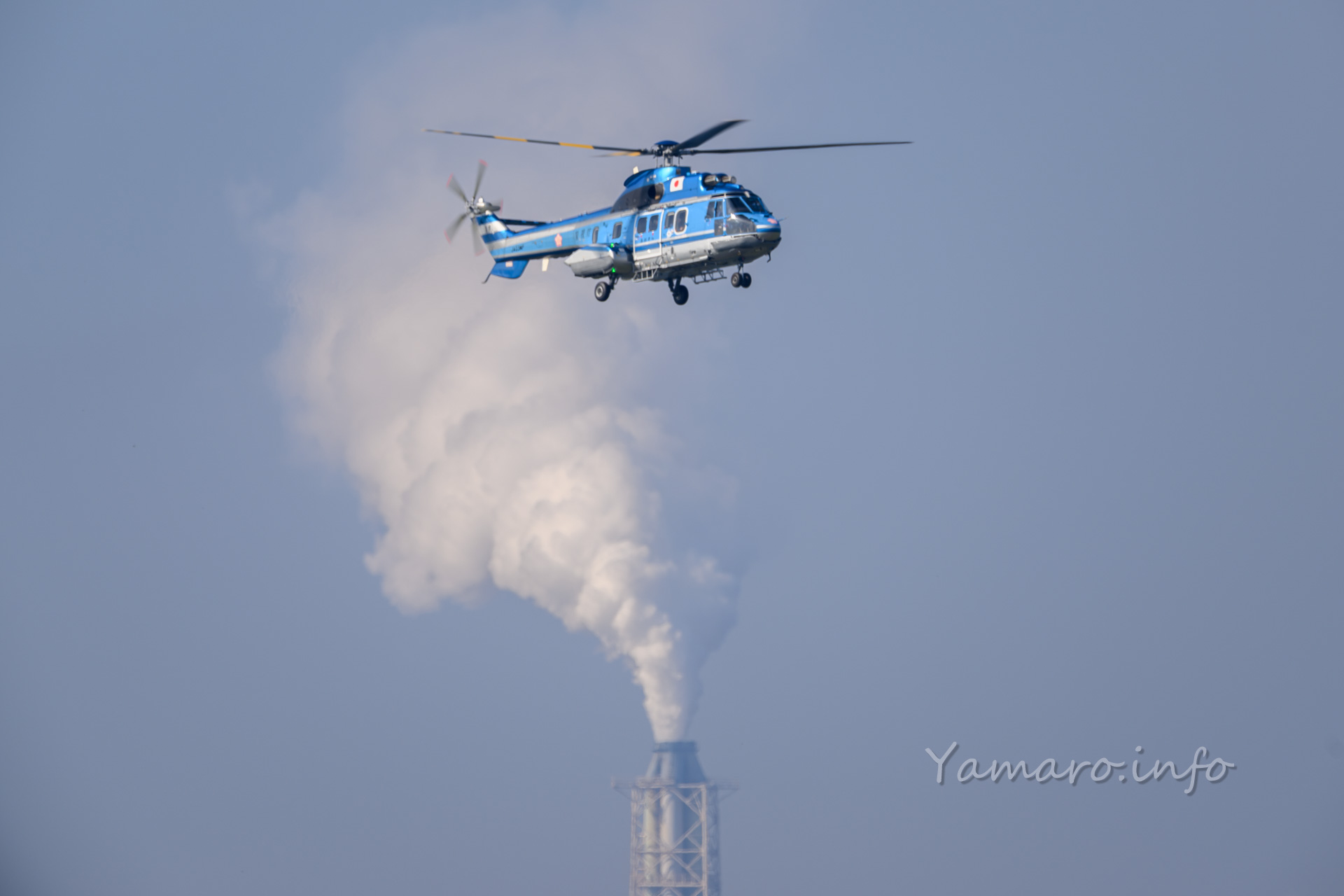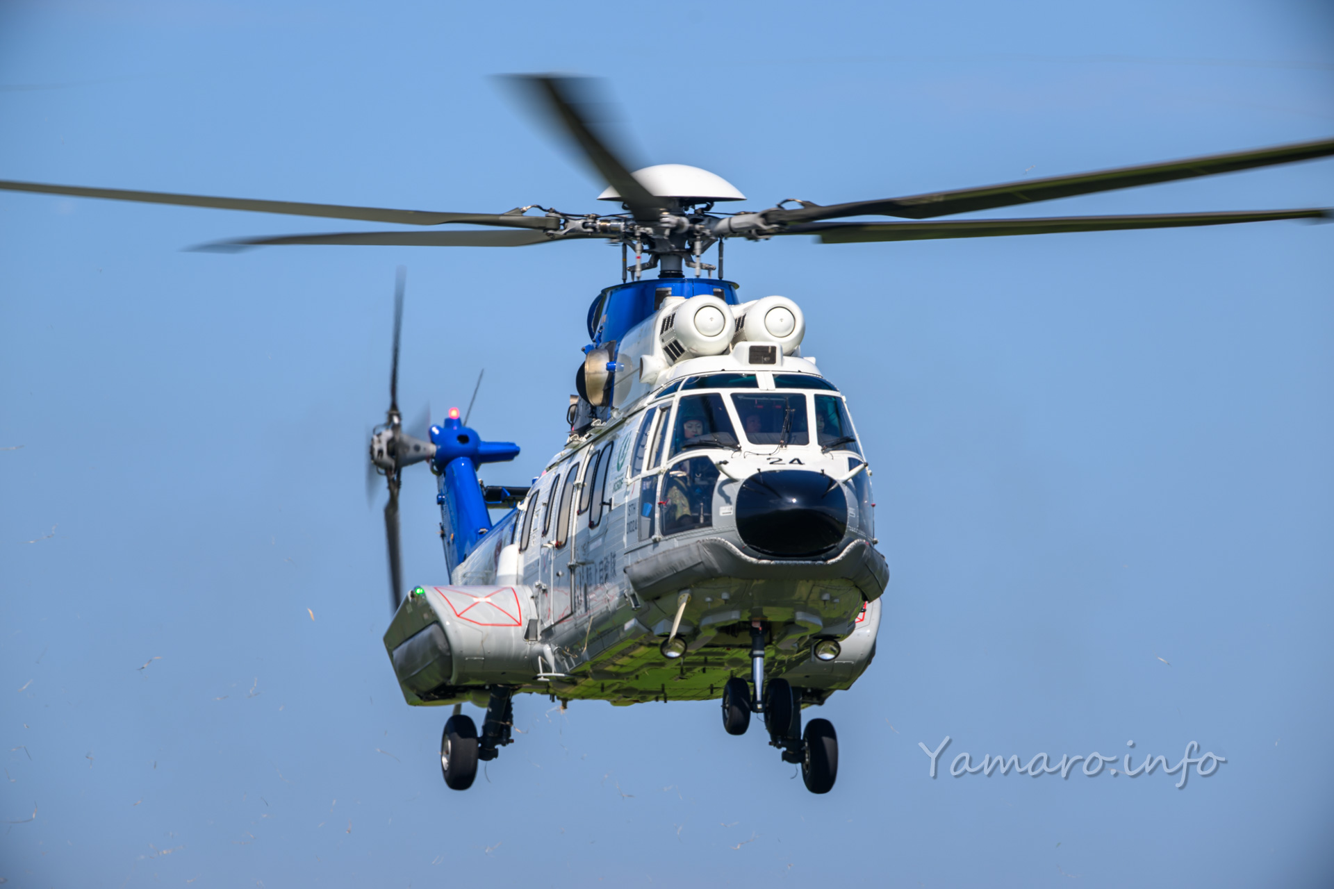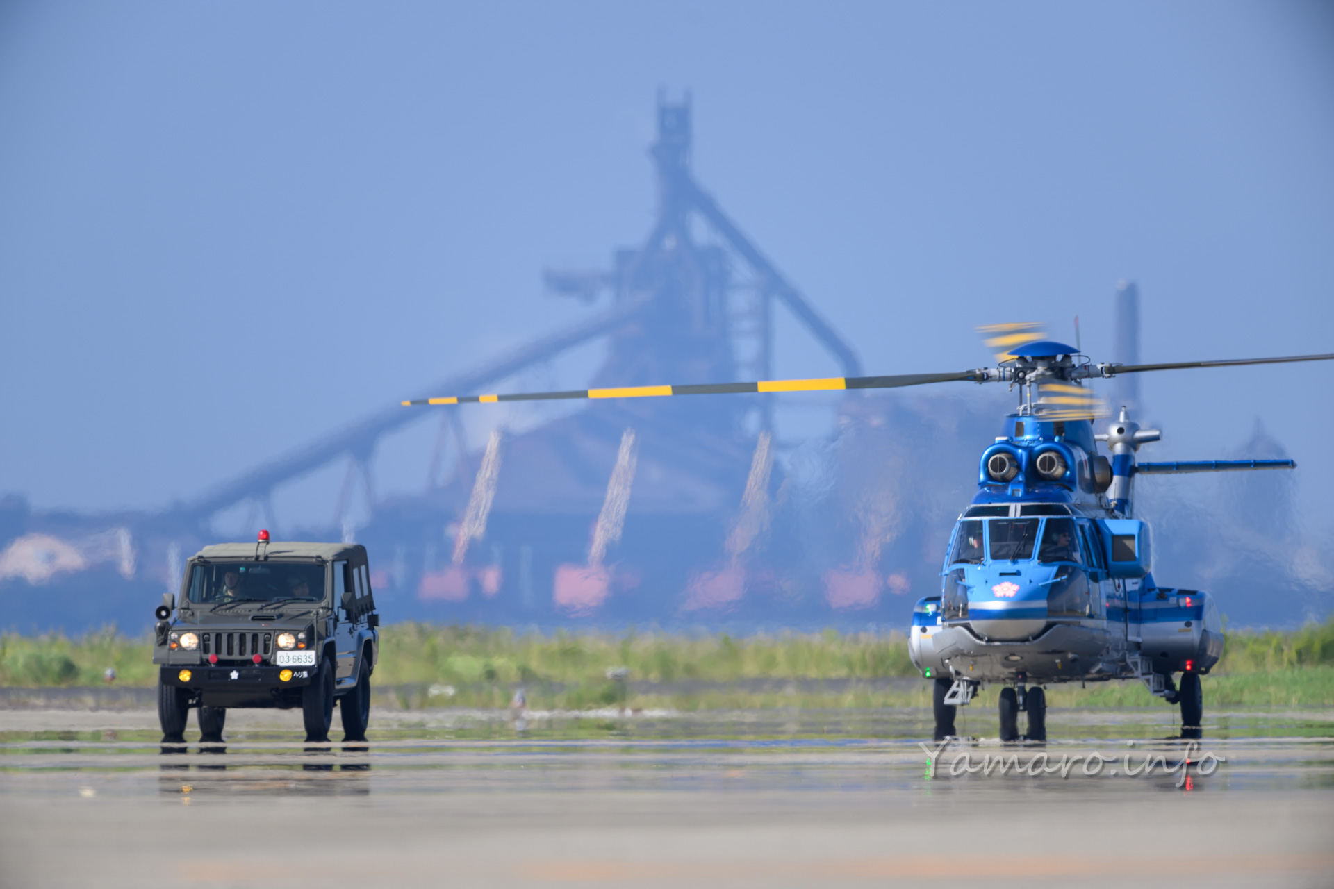 式典会場は去年と違う場所でしたね。式典が始まり、EC-225LP スーパーピューマMK.Ⅱ+が降りてきました。と言ってもちょっと向こうから上がって降りてきただけですけどね。