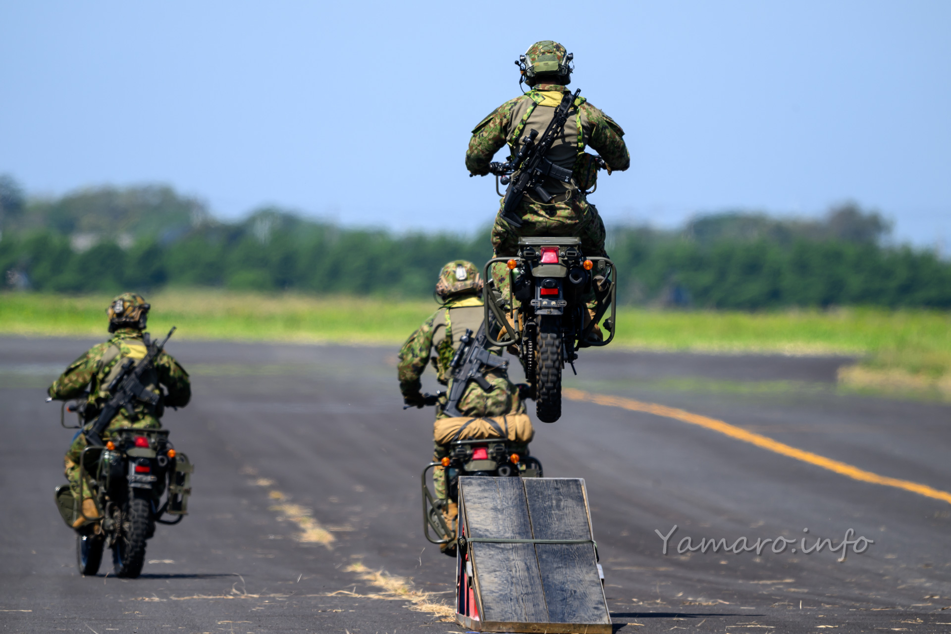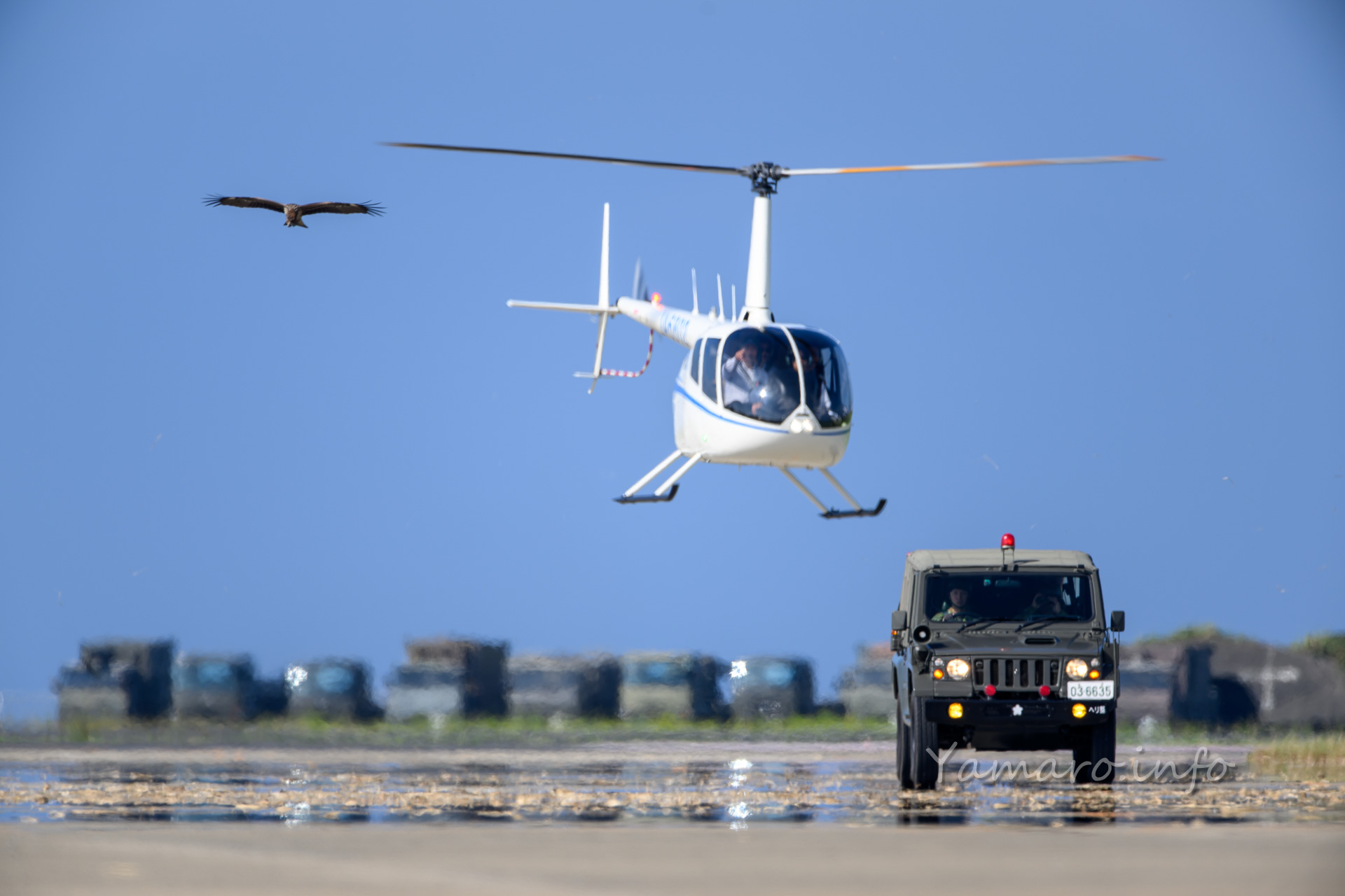 去年はこの時点で曇り、そして雨が降り出しましたが、今年は少し暑いくらいで、滑走路にも逃げ水現象が見られました。