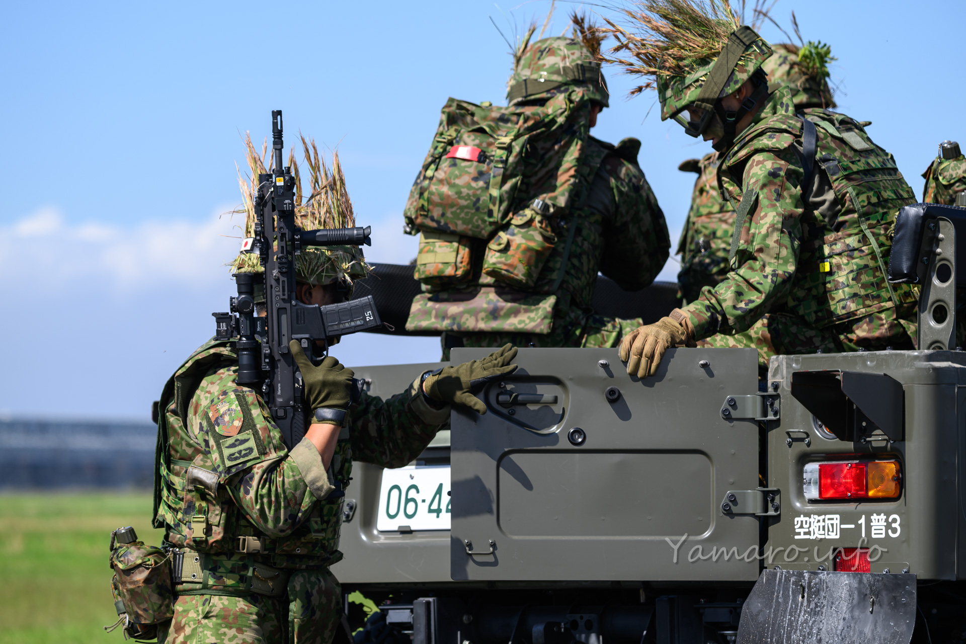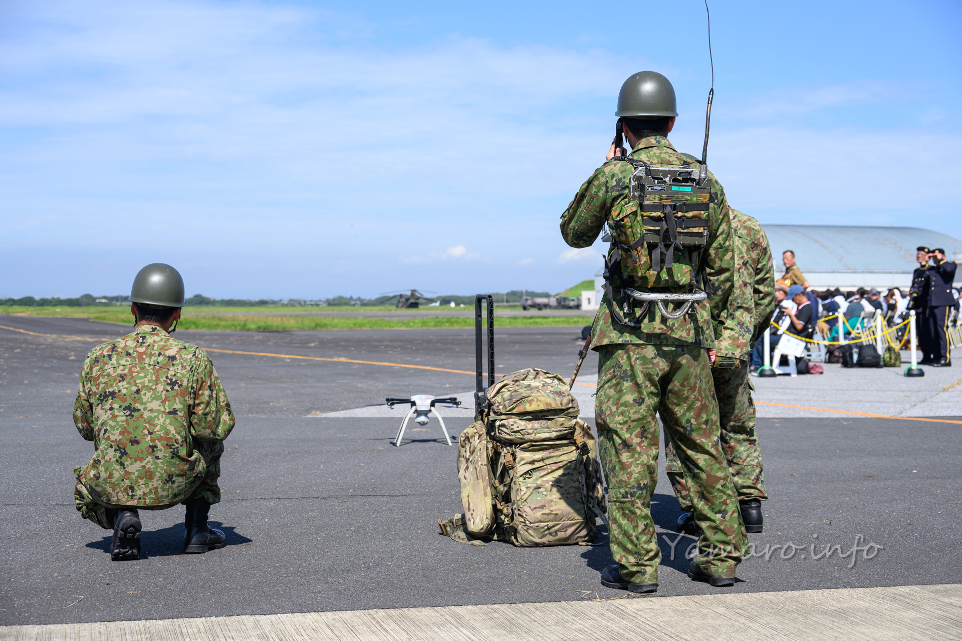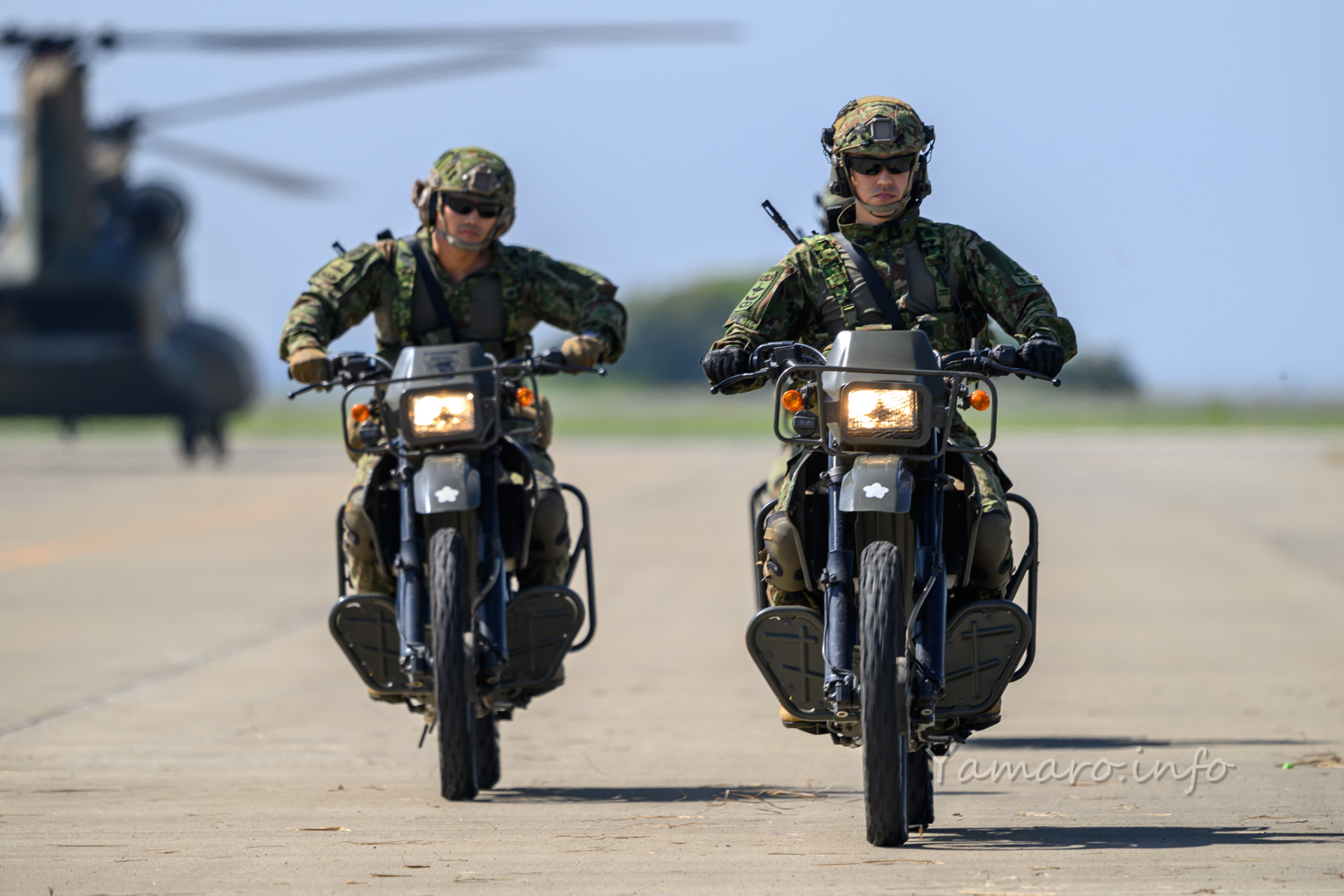 オスプレイは今年は数が少ないものの、しっかり人員輸送の展示を披露。枯れ草が大量に舞いカメラのフォーカスが持っていかれるw