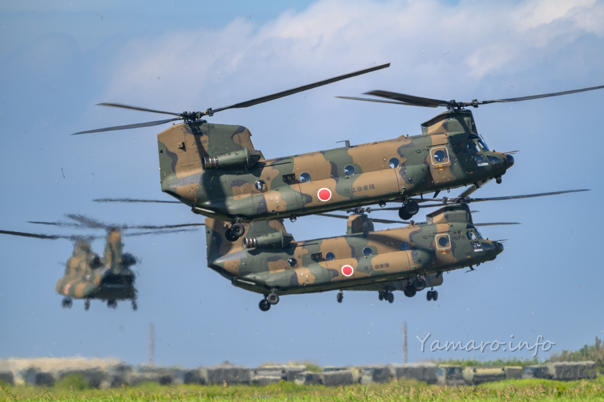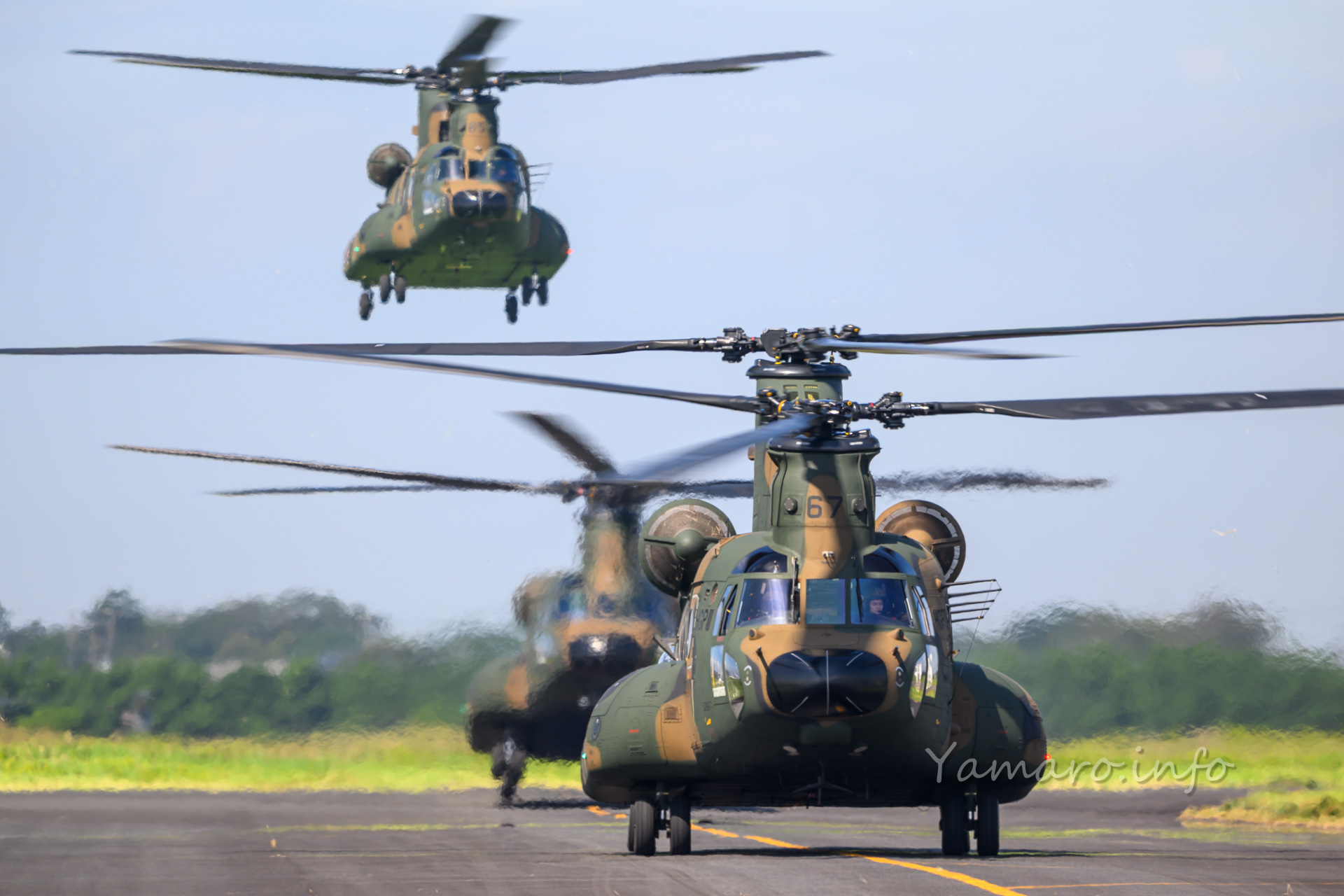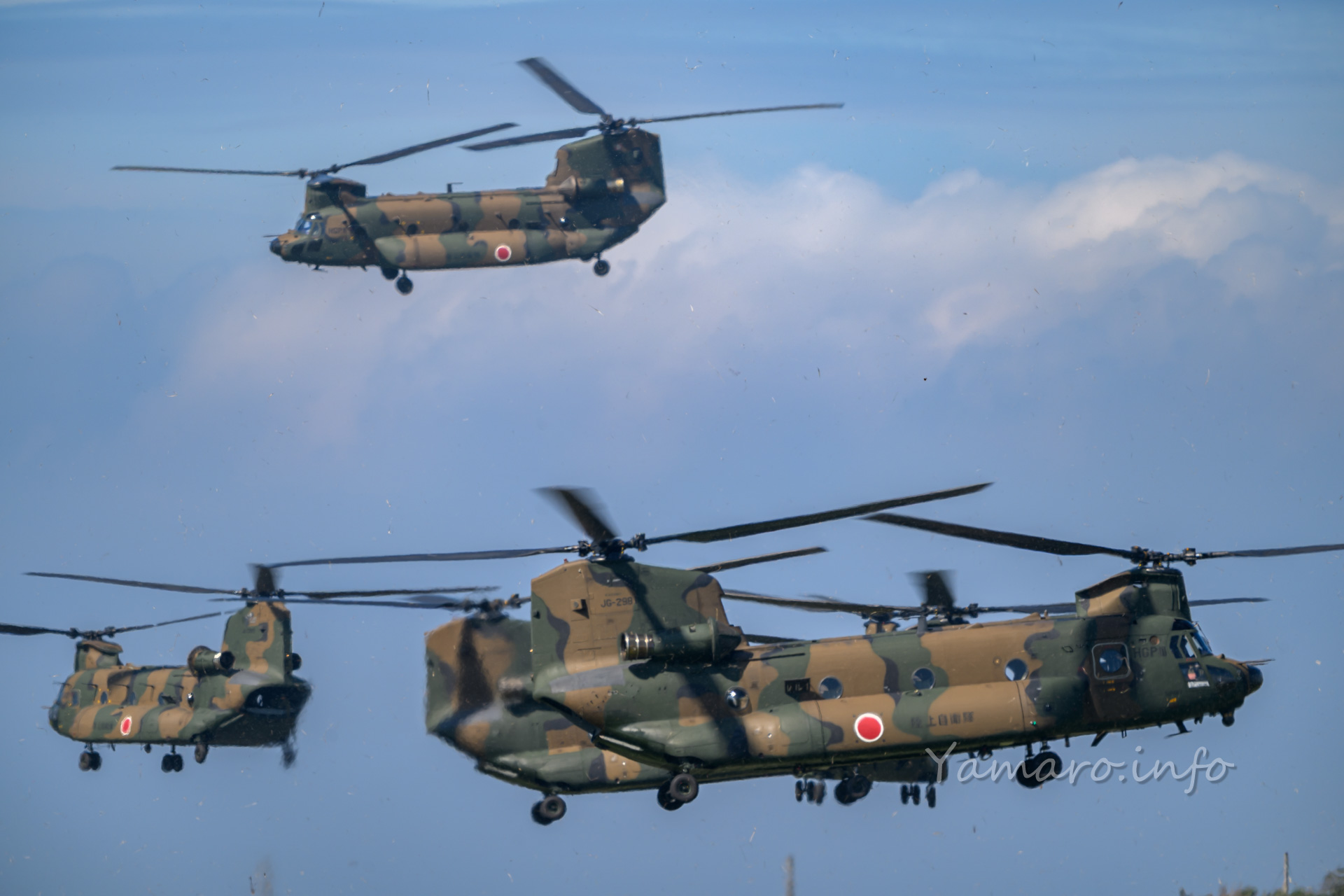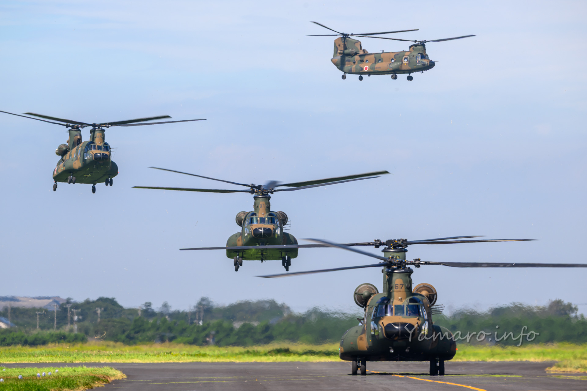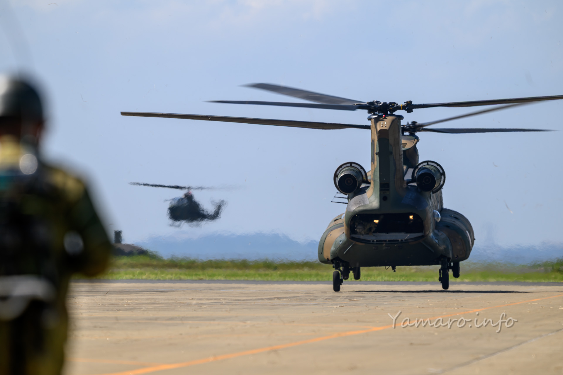 チヌークはこの後体験搭乗を行っていました。この降りてくる並びが良いね。