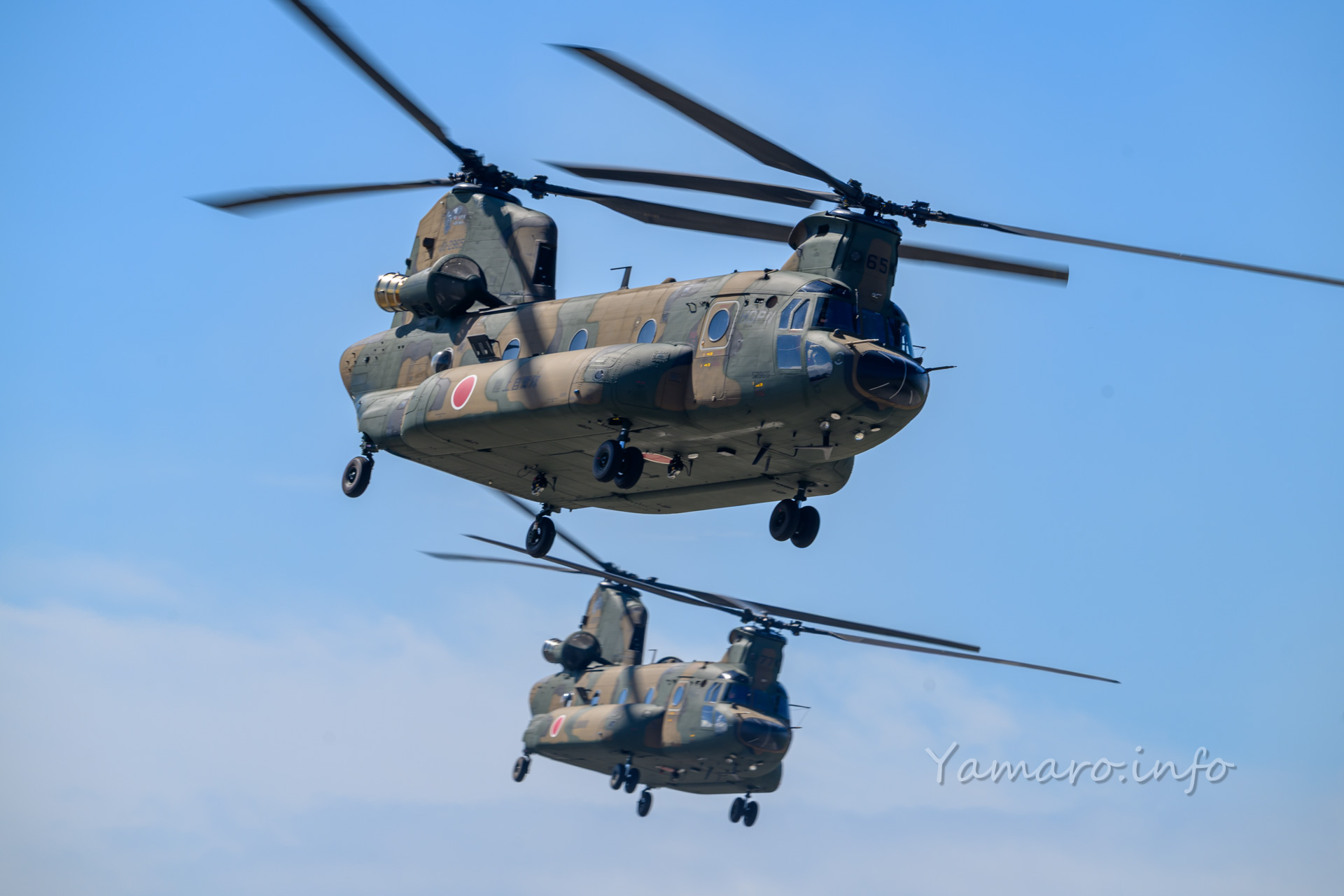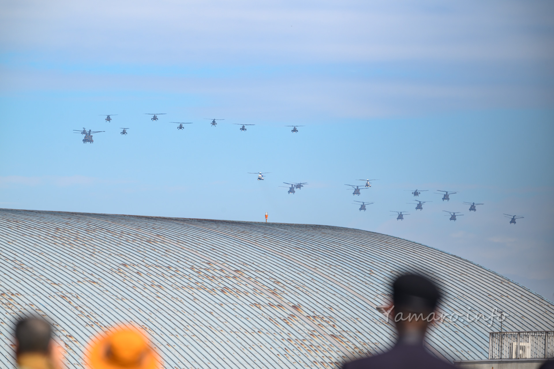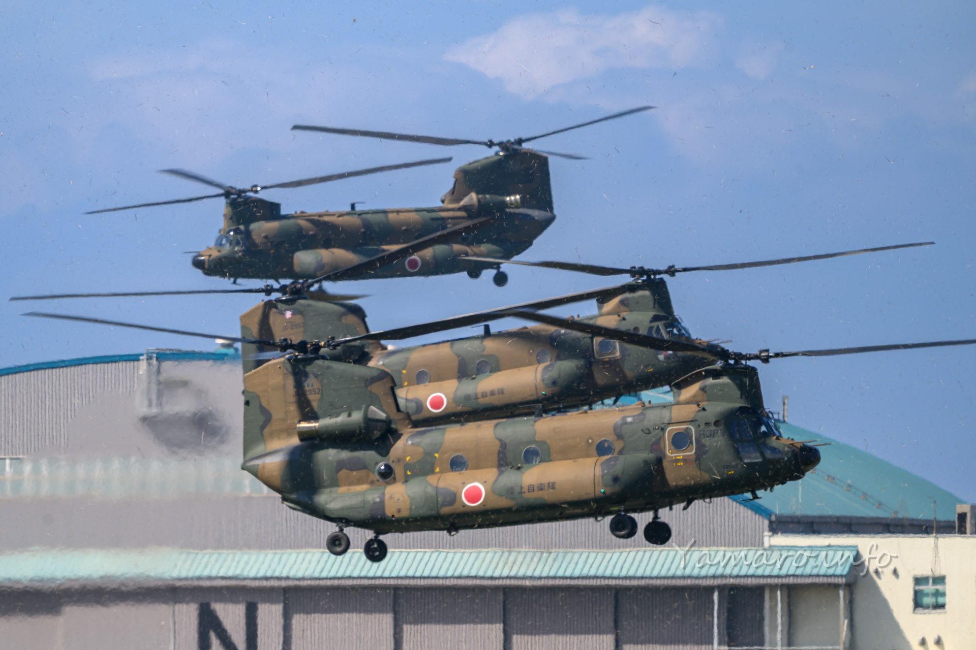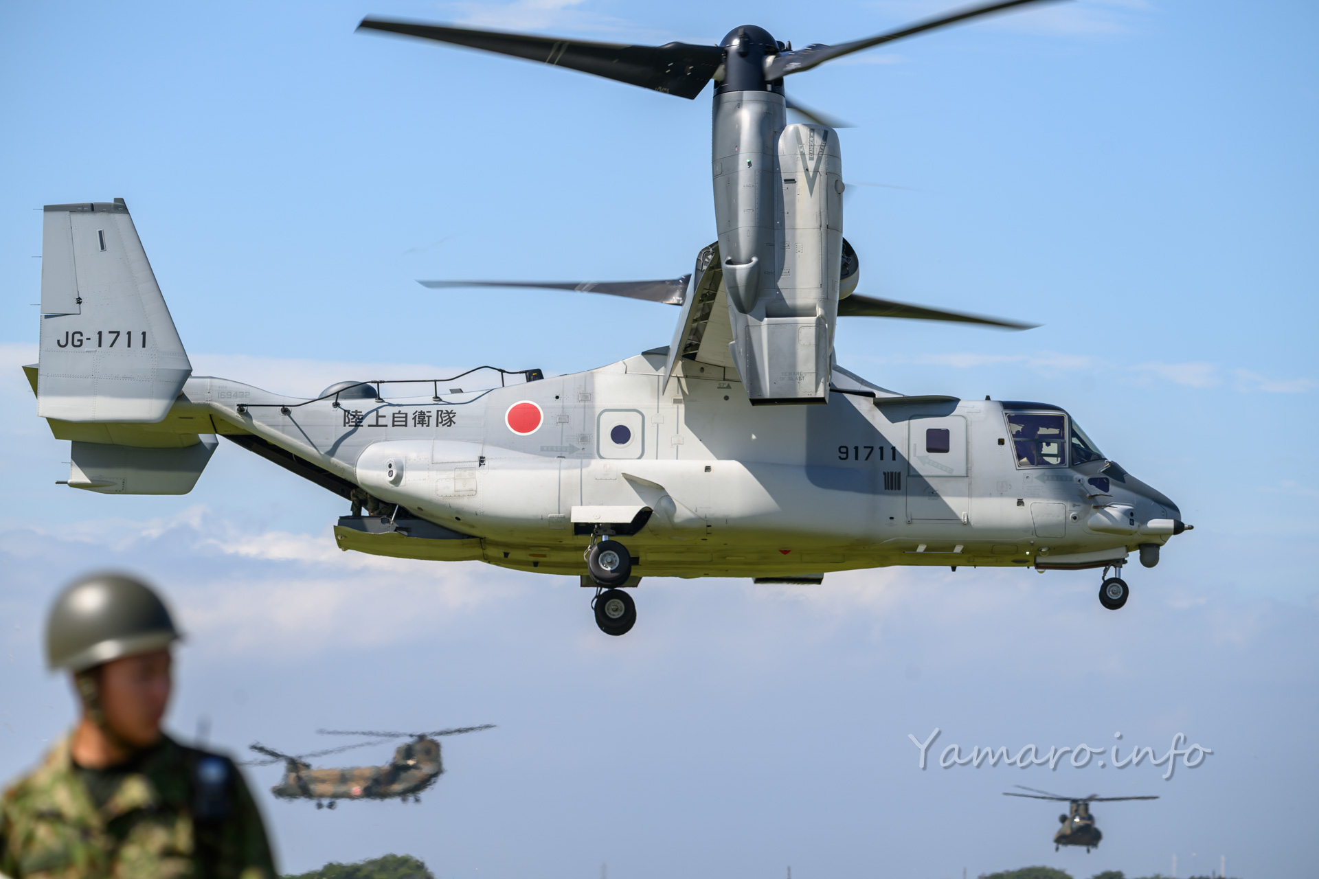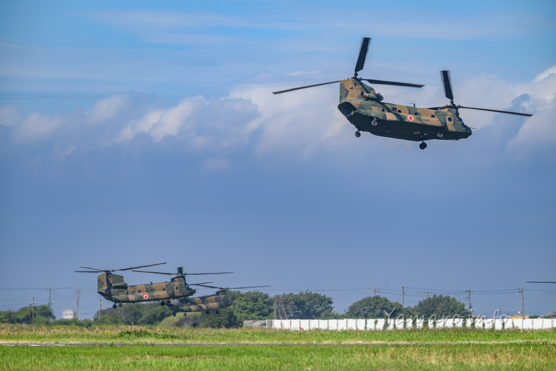 チヌークはこの後体験搭乗を行っていました。この降りてくる並びが良いね。
