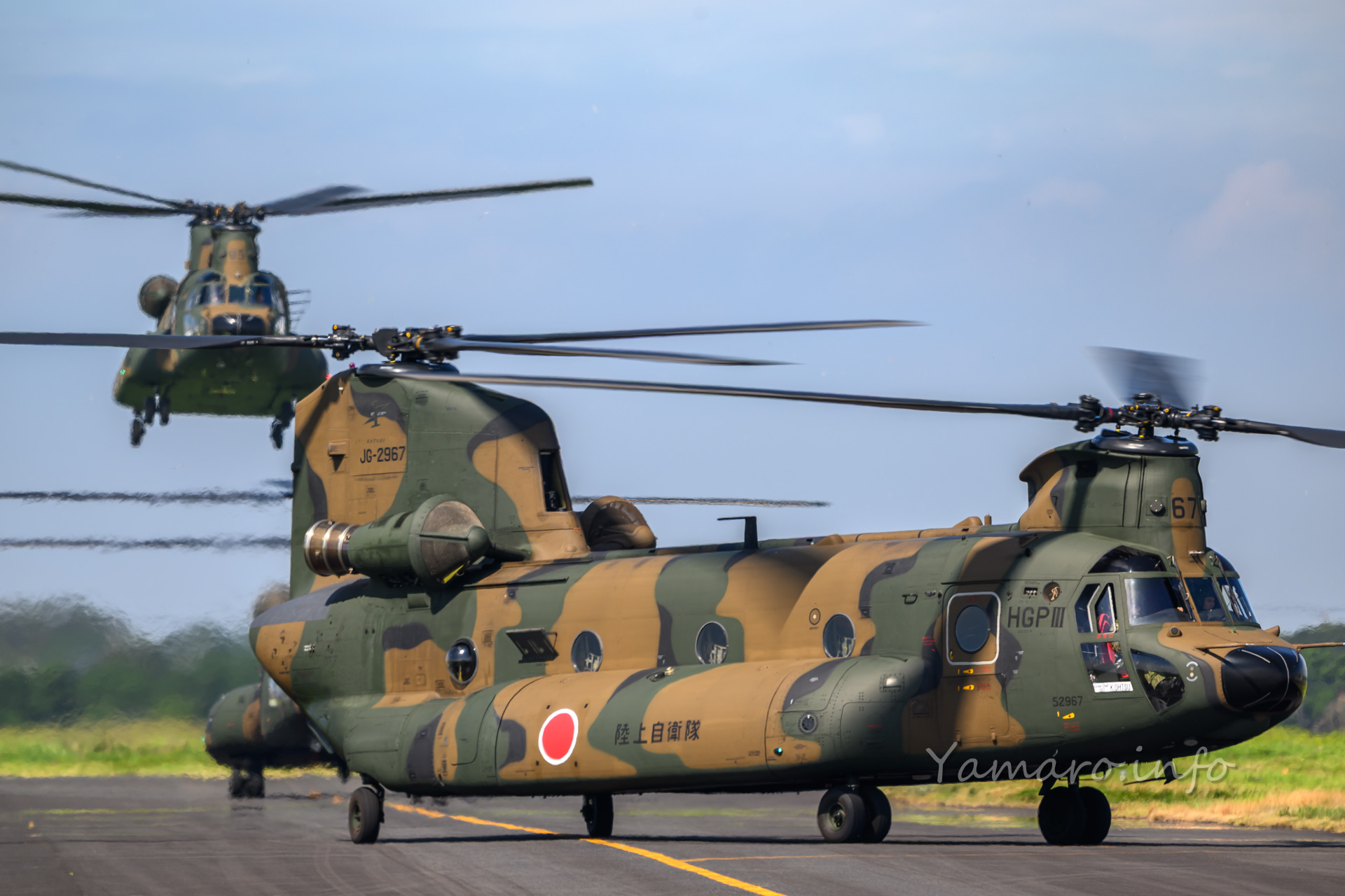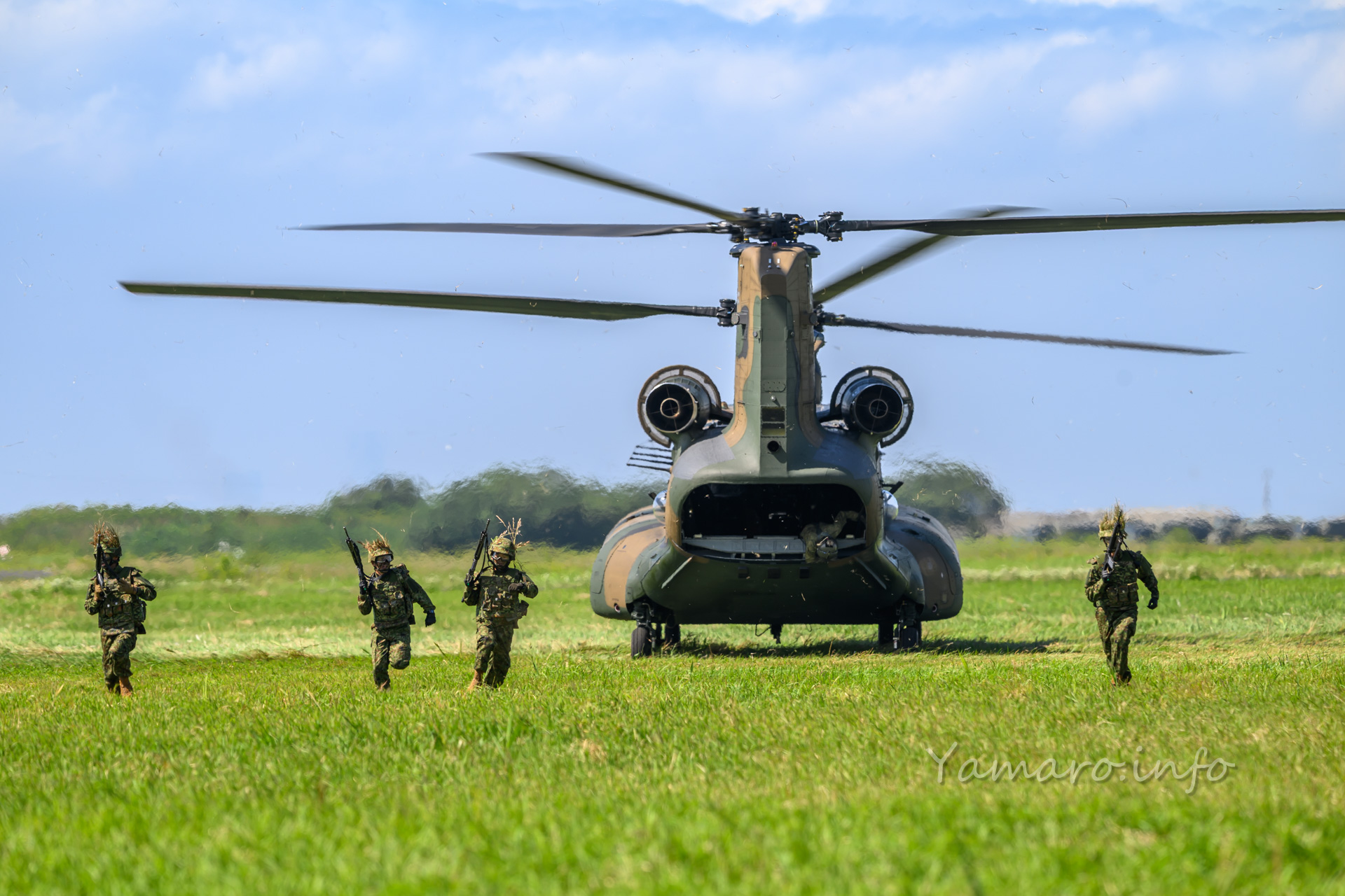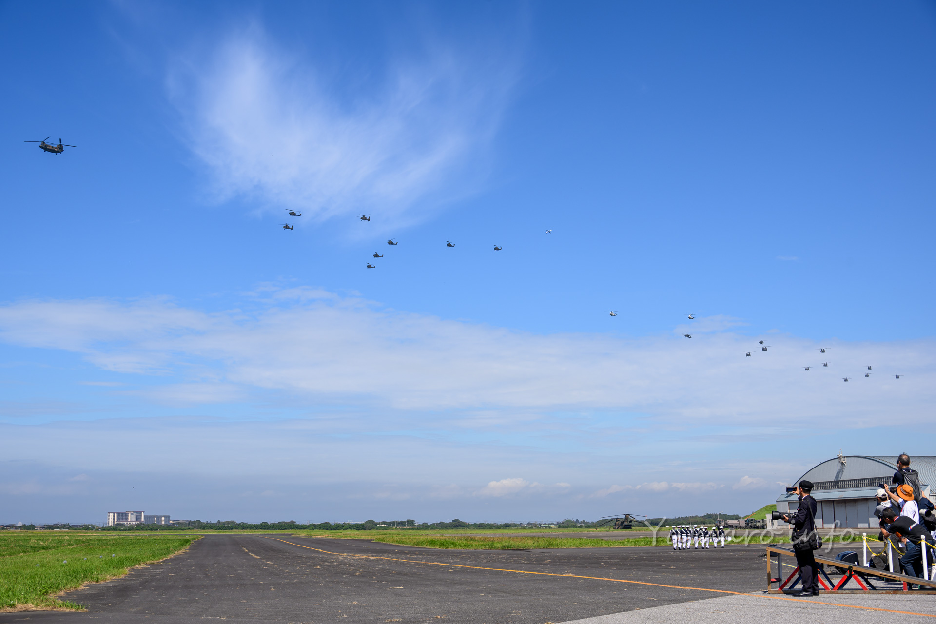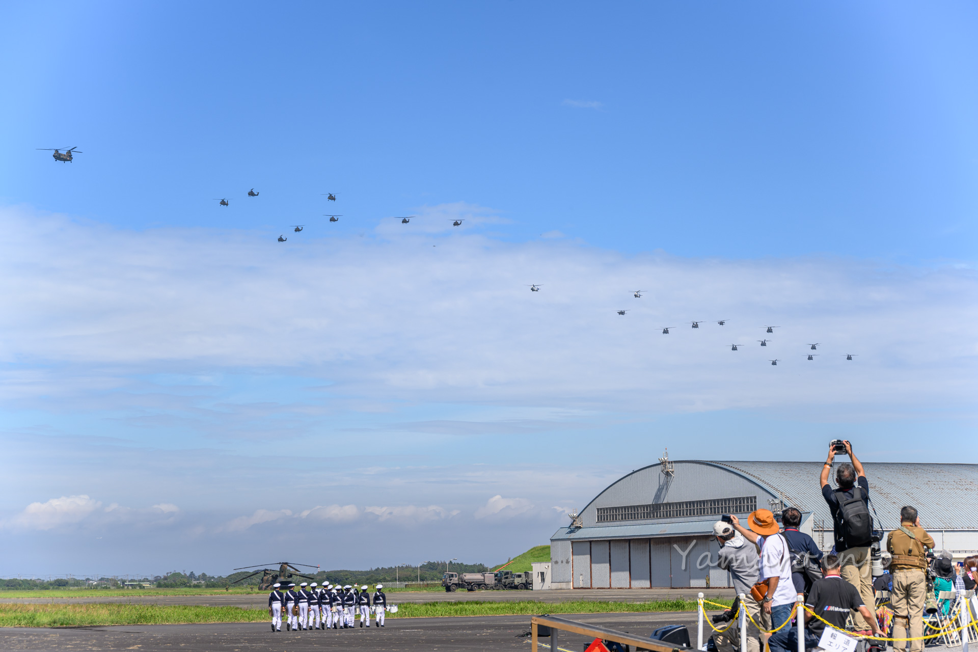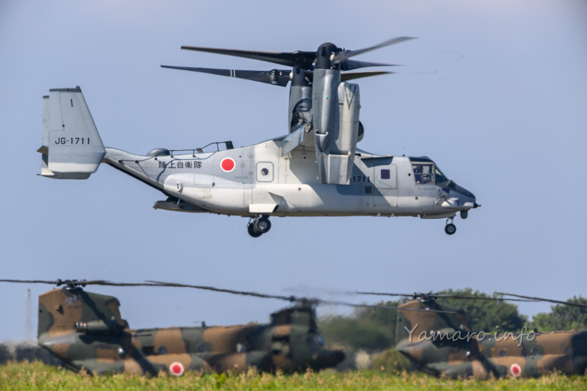 チヌークはこの後体験搭乗を行っていました。この降りてくる並びが良いね。