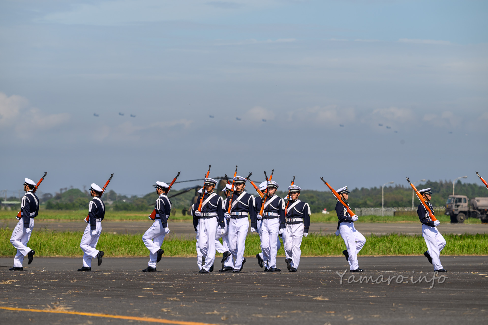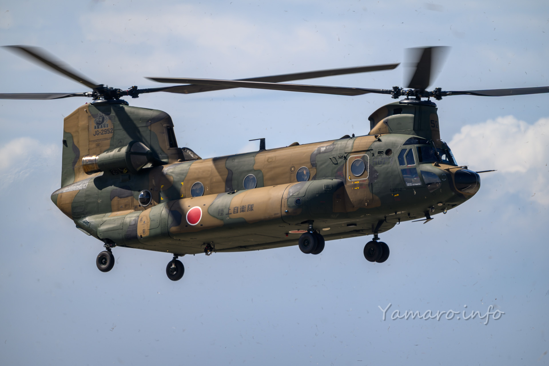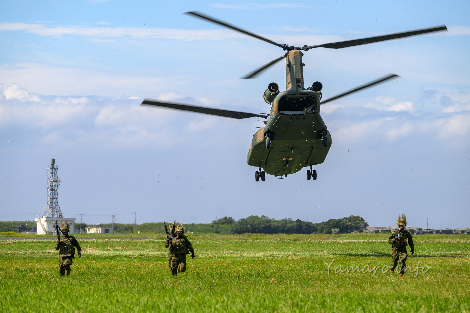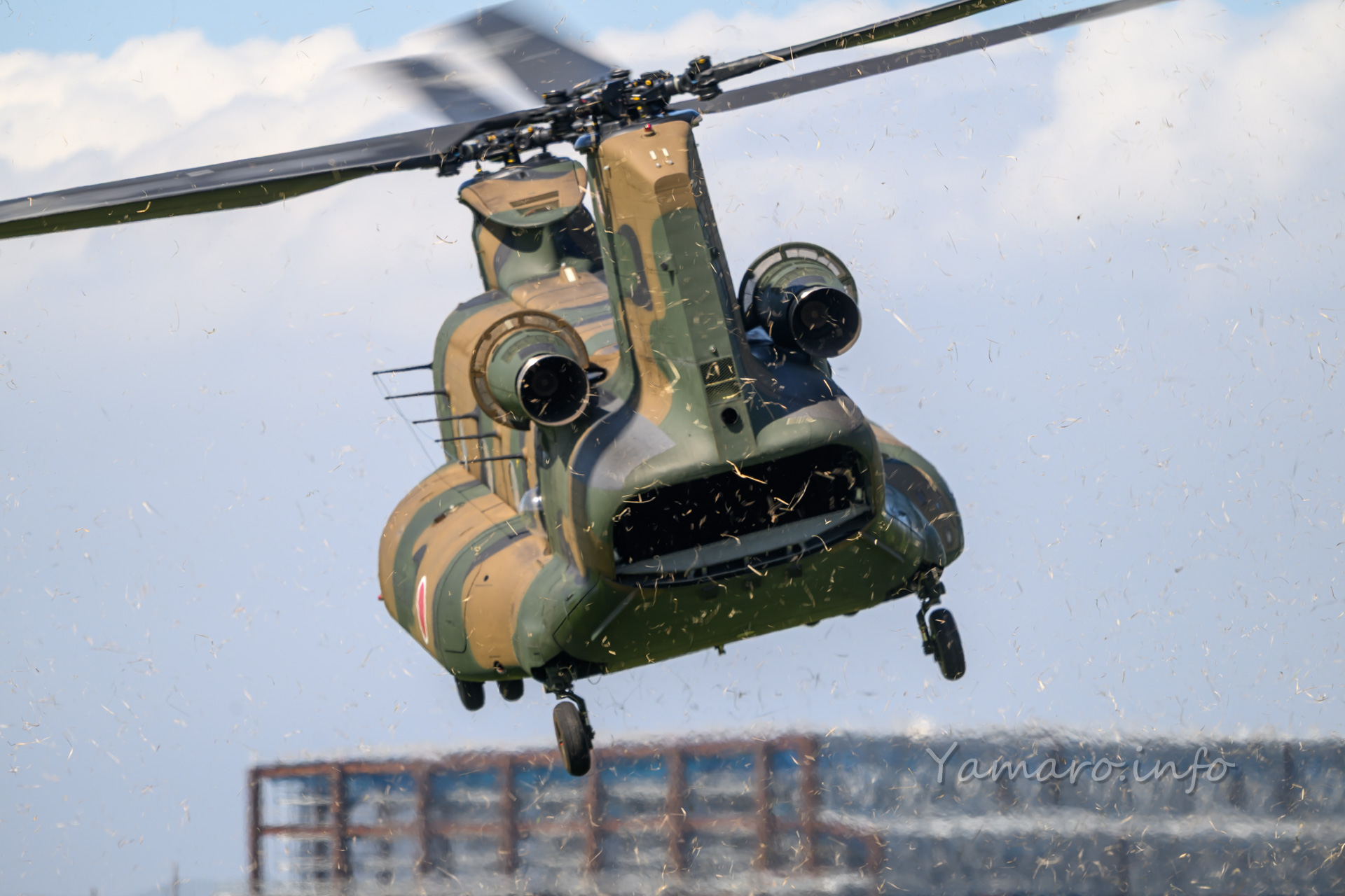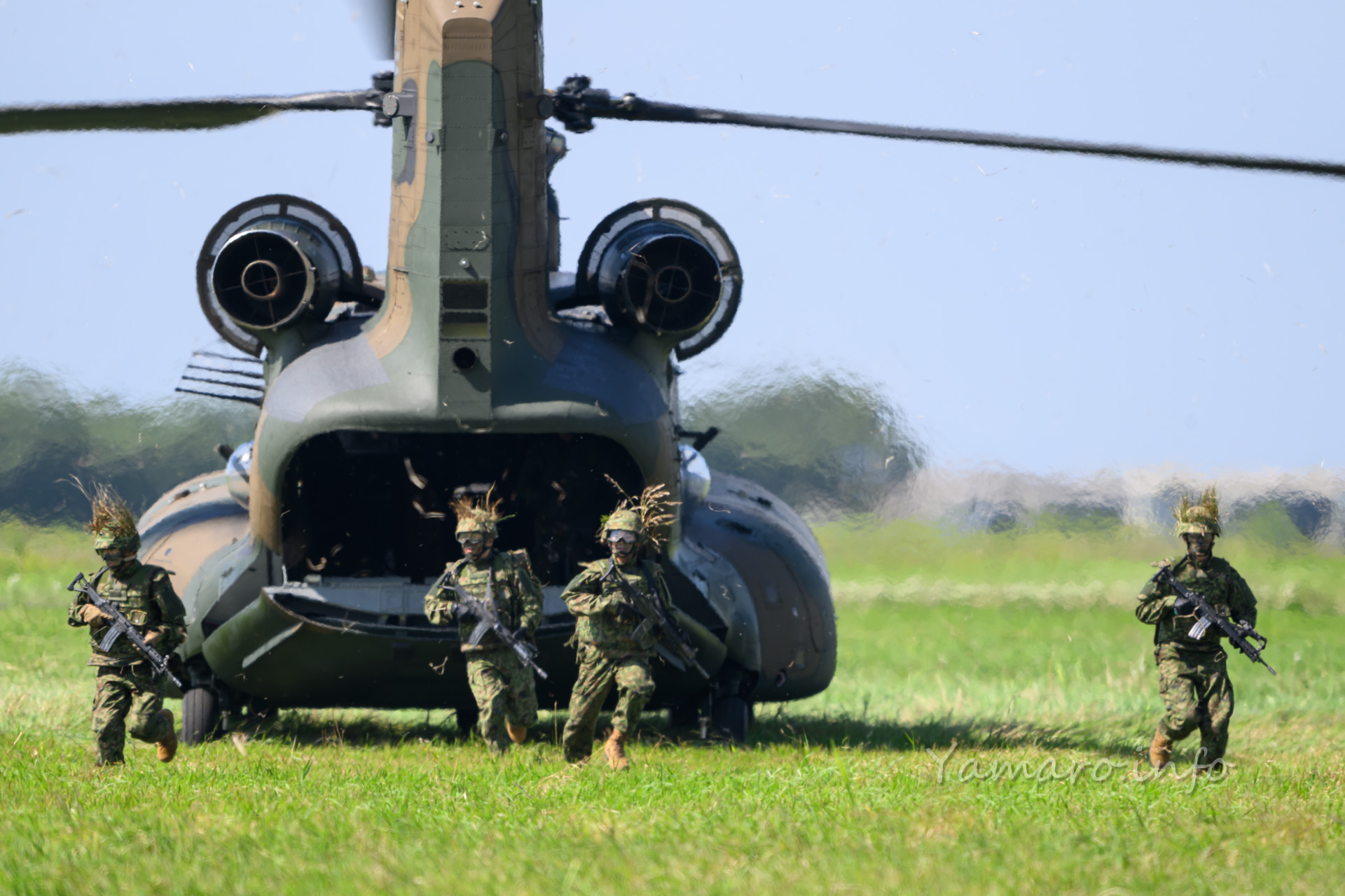 チヌークはこの後体験搭乗を行っていました。この降りてくる並びが良いね。