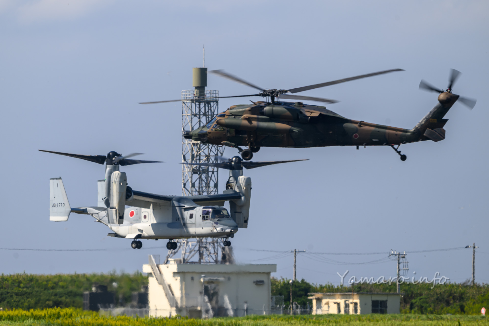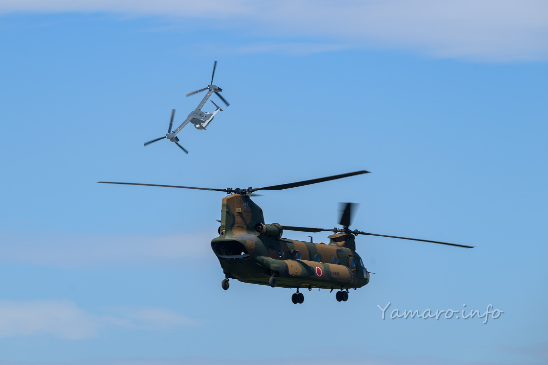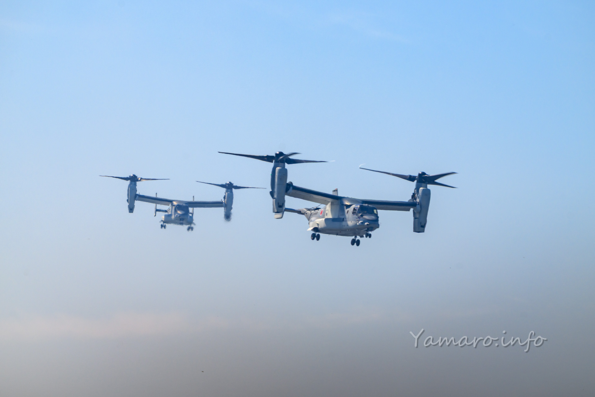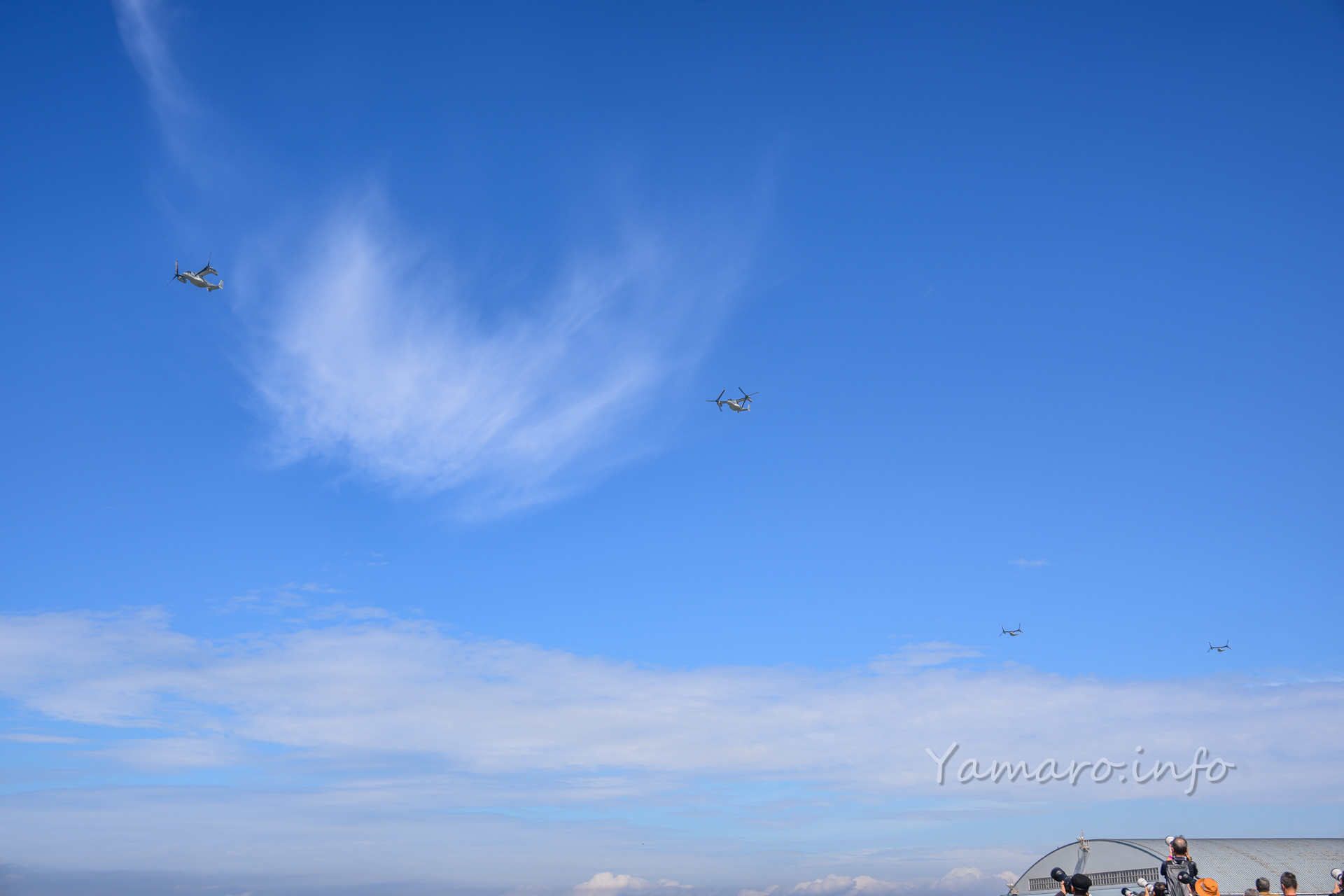上がるか上がらないのか…、朝の時点ではわからなかったオスプレイも一斉に始動。