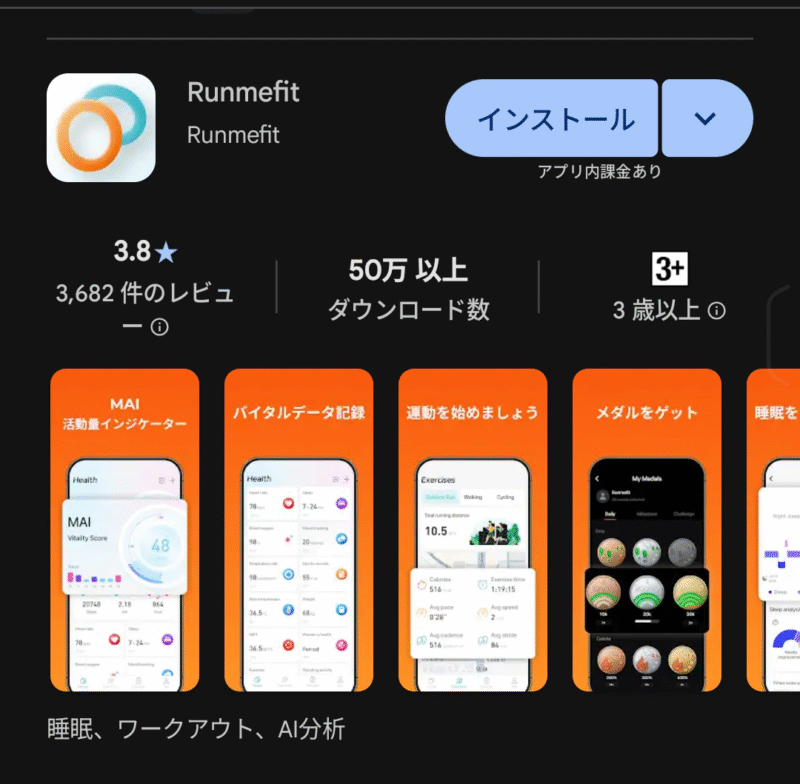 同じデザインでメーカー名が異なる商品が出ていますが、中身は同じみたいですね。アプリも同じRunmefitというものを使うようです。