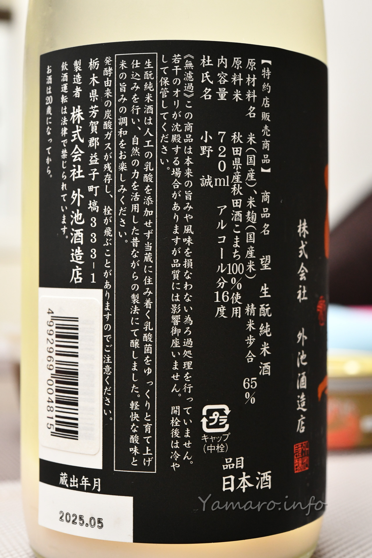 【外池酒造】望 bo: 生酛純米 活性生にごり