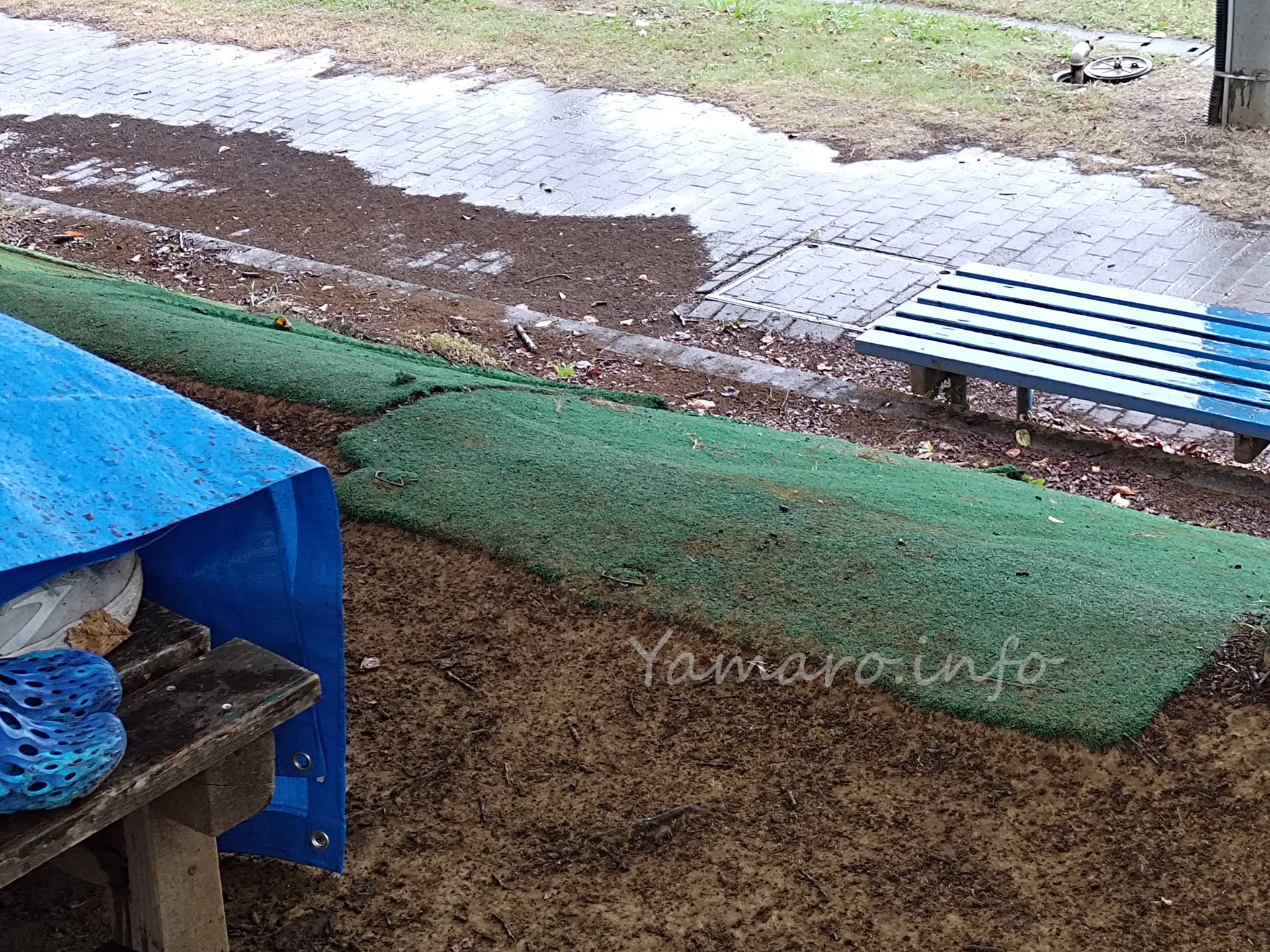 写真に映るくらいに割と強い雨でした。後半雨がやんだけど、もちろんドロドロになりますね(笑