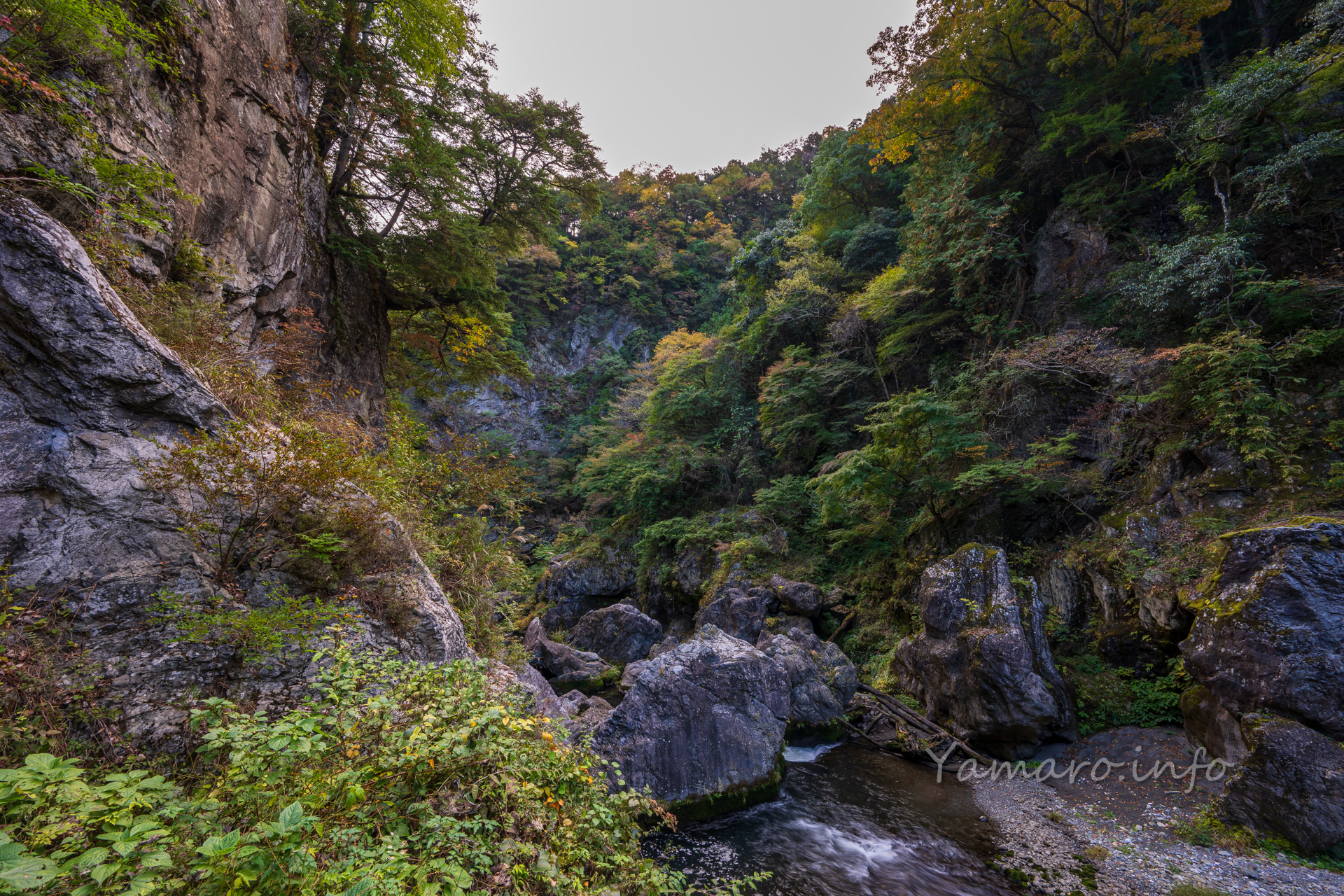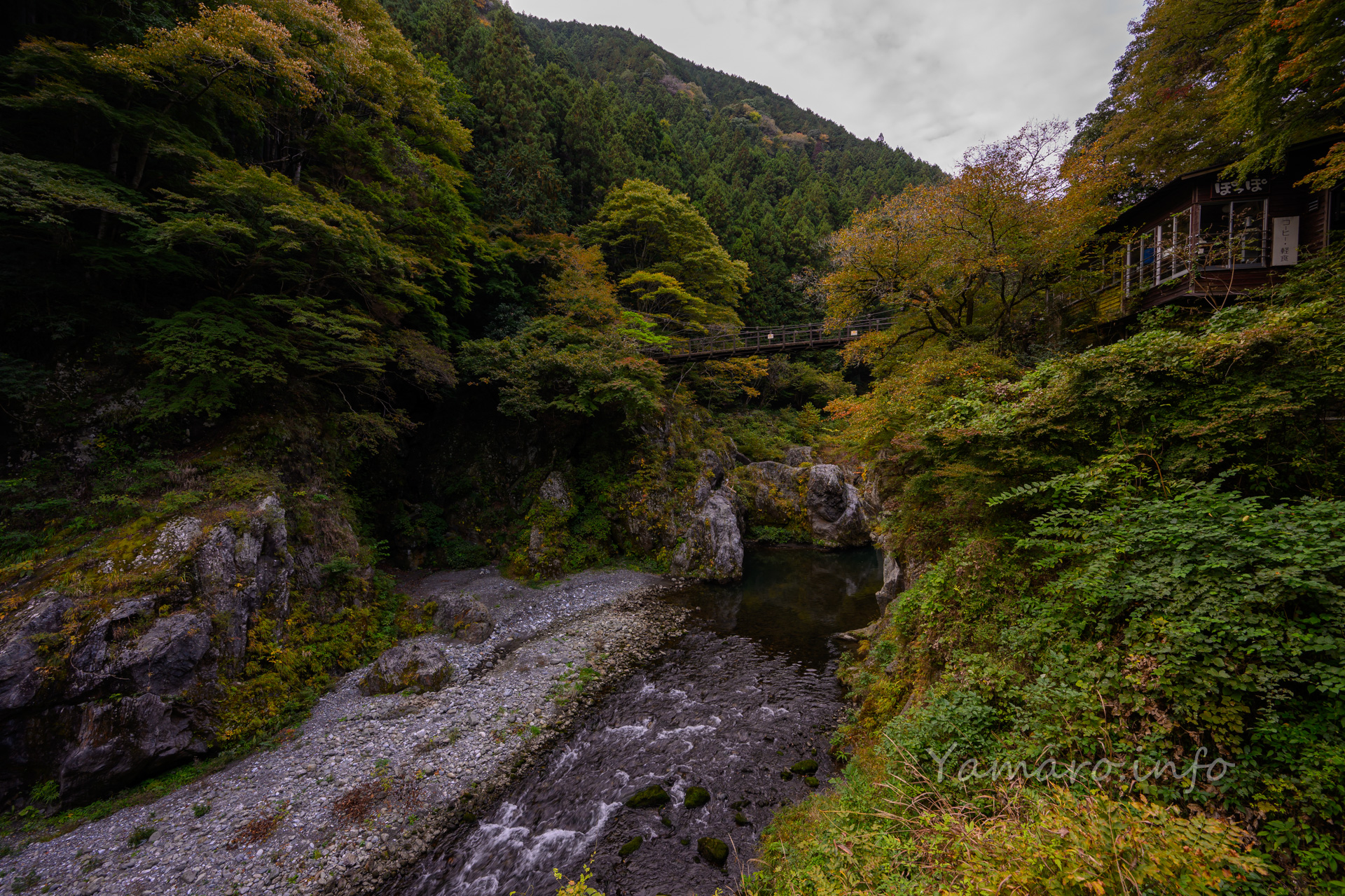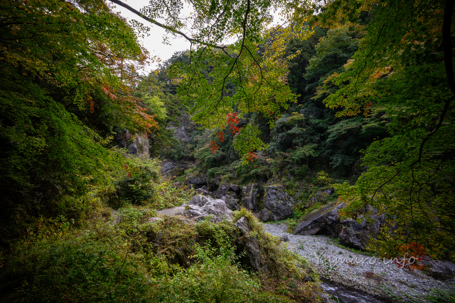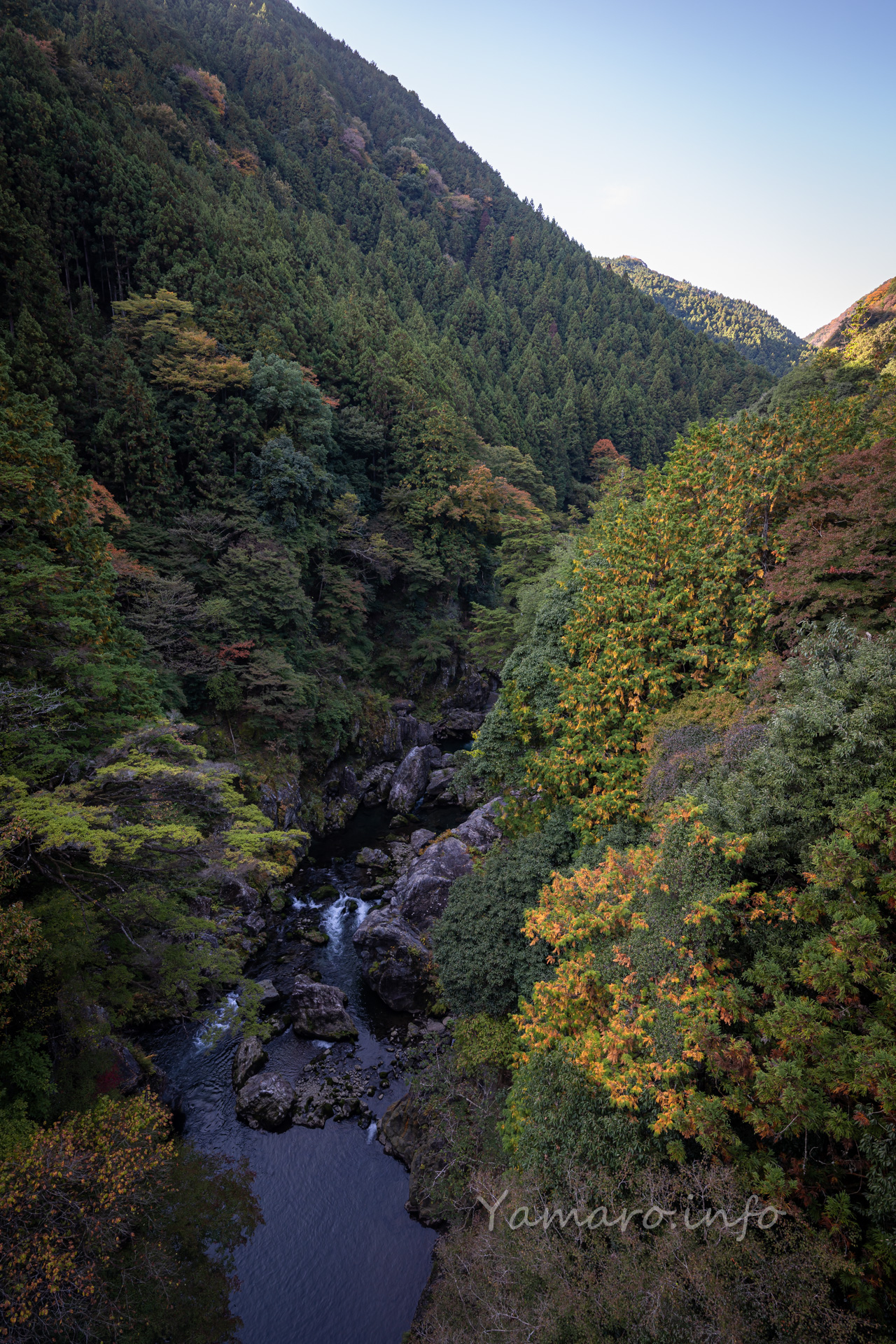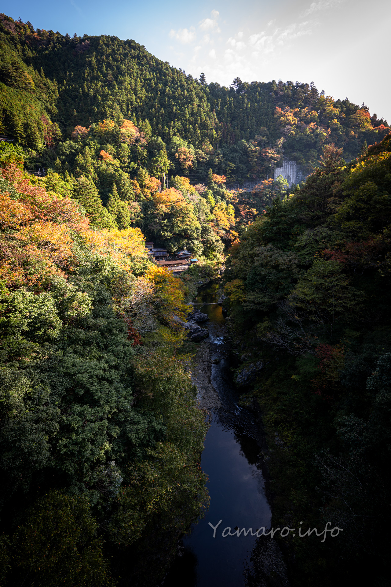 さて紅葉、イチョウ以外はまだまだ色づきが始まっていなかった11月上旬の奥多摩の鳩ノ巣、ごく僅かに色づいているものもあったので、135mmで抜いてみました。