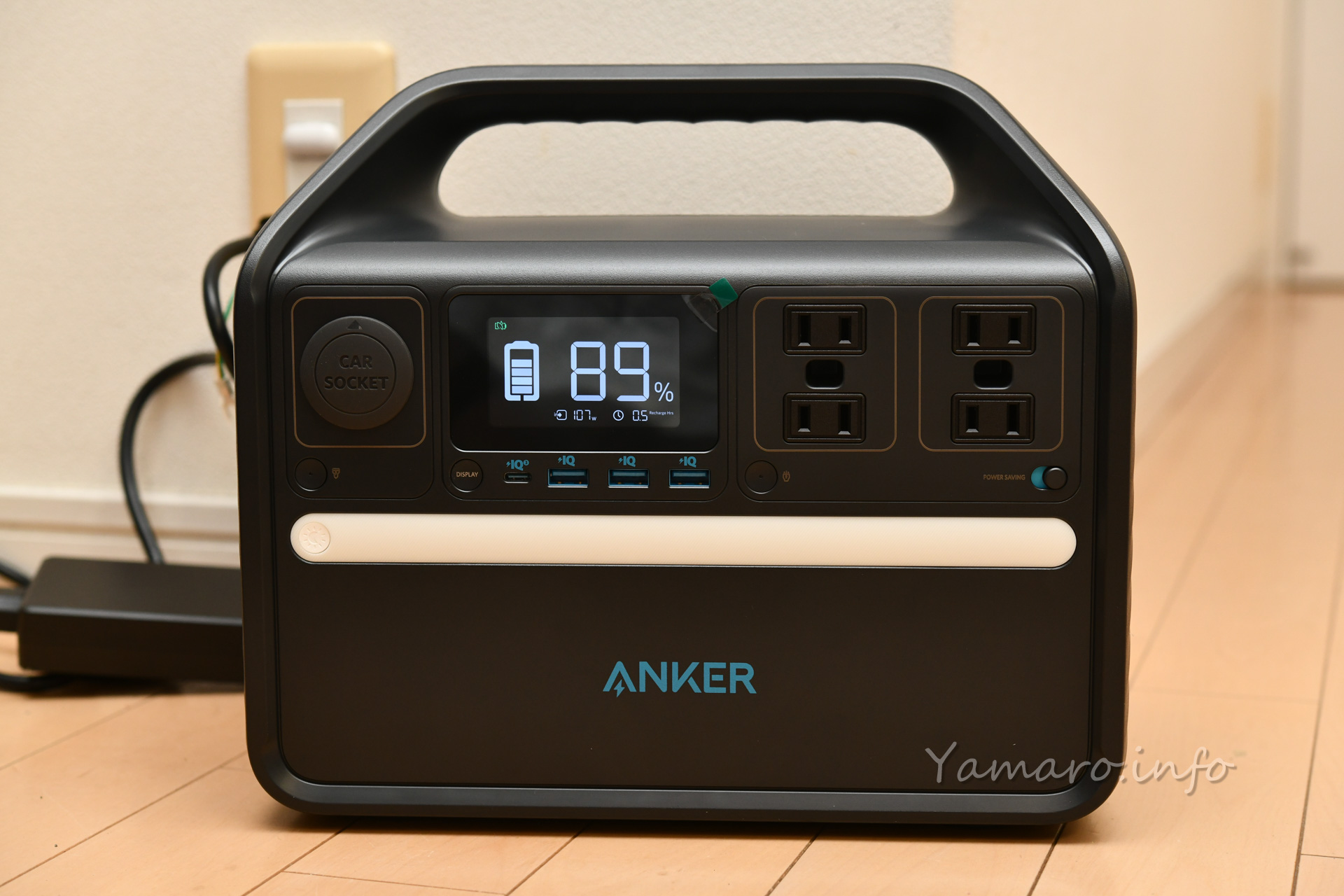 もっと上級機種なら1000Wや1500Wといった出力も可能ですが、こちらはAnker 535はミドルクラスなので、ACコンセントは最大500Wまでとなっています。