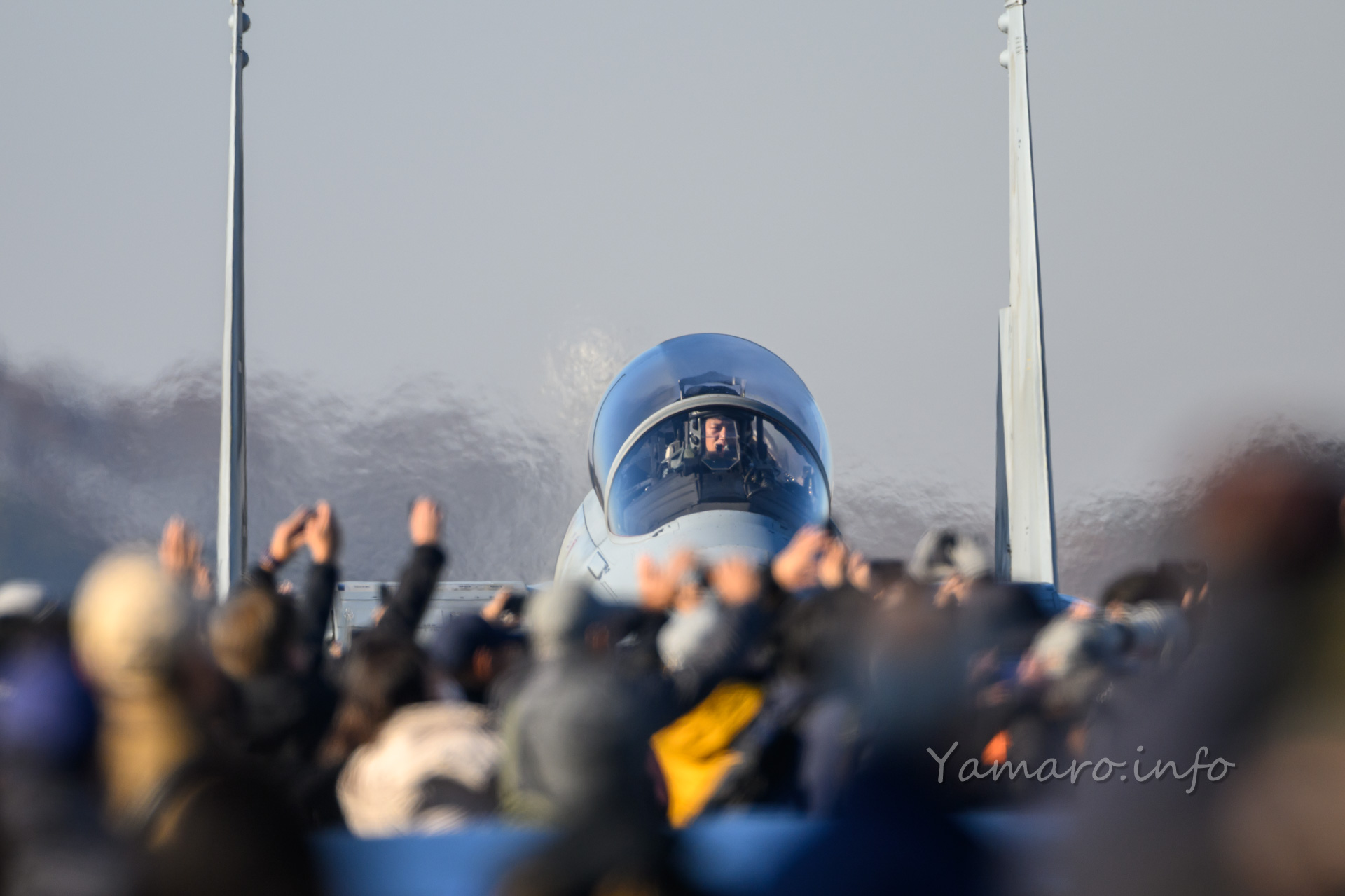 午後は3SQのF-2戦闘機の起動飛行。前日の予行はバッチリ決まったけどその時だけ曇るという残念な展開。